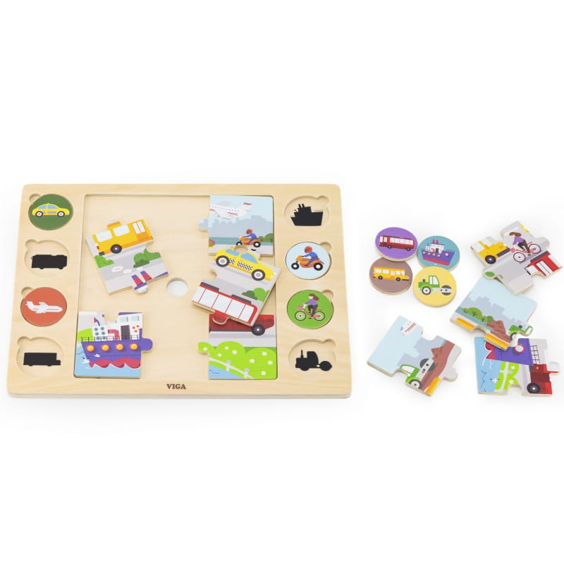 VIGA Drewniane Puzzle Odgadnij po Cieniu - Środki Transportu Układanka 17 el.