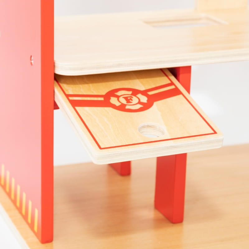 ✔️ Drugie piętro z przytulną strefą odpoczynku dla strażaków, działającym dzwonkiem i zjeżdżalnią umożliwiającą szybką reakcję na alarmy