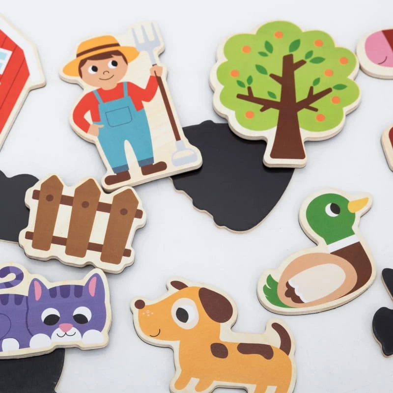 Poznaj urocze zwierzątka z farmy w formie magnesów drewnianych od marki VIGA, magnetycznych figurek! Ten zestaw 20 elementów zachęca do zabawy na każdej powierzchni magnetycznej – lodówce, tablicy czy specjalnej macie. Dzieci mogą układać sceny, opowiadać własne historie i poznawać świat zwierząt gospodarskich. Kolorowe, trwałe elementy są lekkie i łatwe do trzymania przez małe rączki. Idealny zestaw do rozwijania kreatywności, języka i zdolności manualnych najmłodszych.
