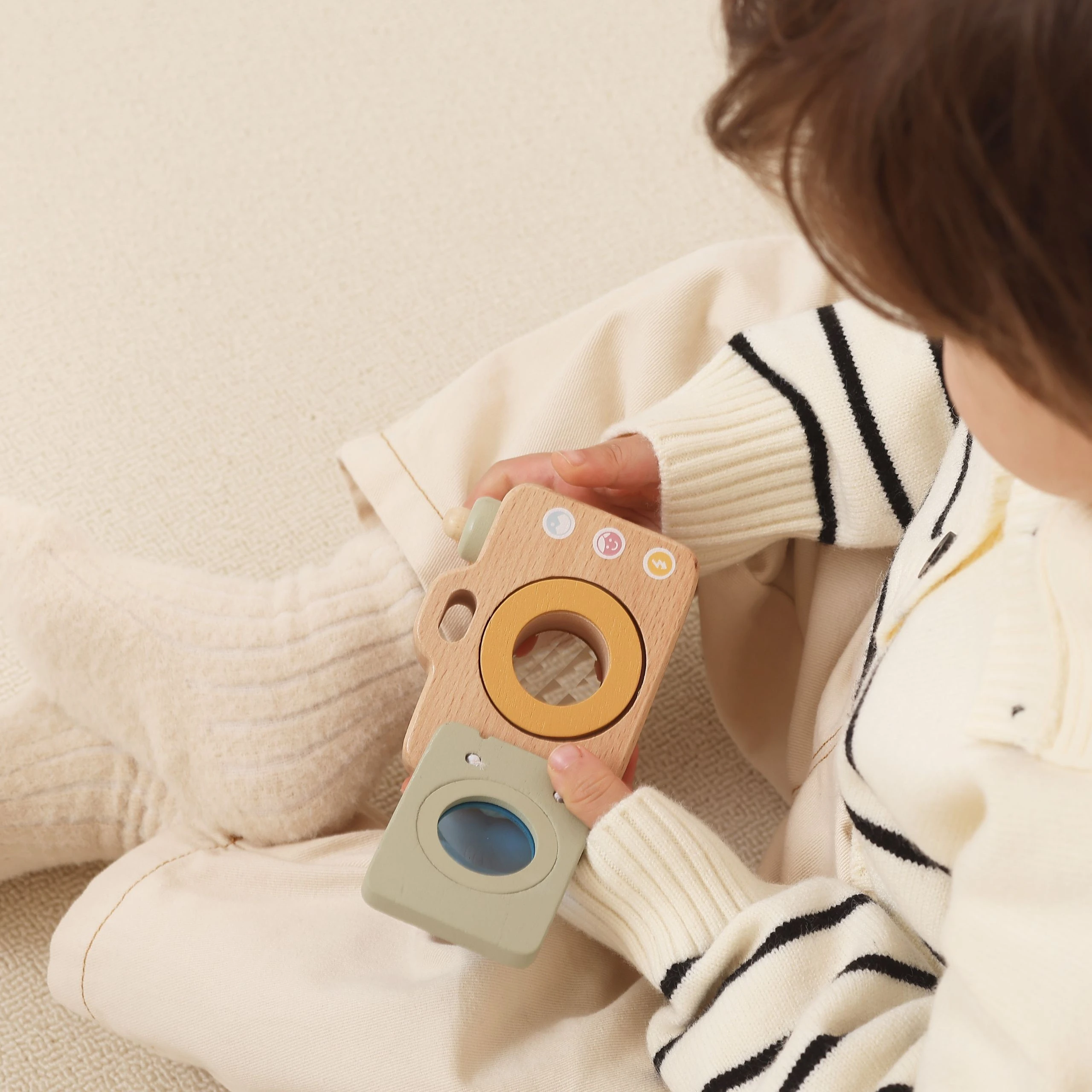 - - Drewniana zabawka edukacyjna – aparat fotograficzny dla dzieci