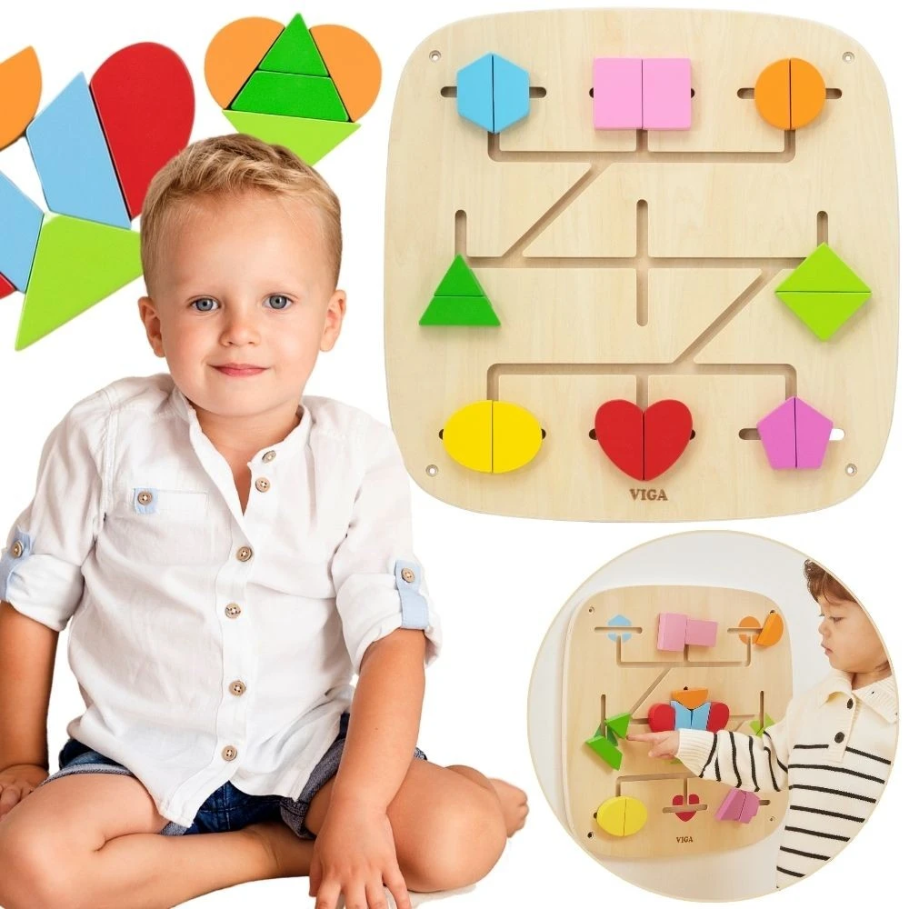 Ten kolorowy panel ścienny od marki Viga, to połączenie mądrej zabawy i nauki przez działanie. Dziecko, przesuwając klocki po torach, odkrywa świat kształtów i kolorów w angażujący, naturalny sposób. Zabawa pobudza ciekawość, zachęca do eksperymentowania i tworzenia własnych wzorów. Solidne, drewniane wykonanie sprawia, że panel idealnie nadaje się do domu, przedszkola lub sali zabaw. To świetne rozwiązanie, które uczy przez ruch, dotyk i obserwację – dokładnie tak, jak lubią dzieci.