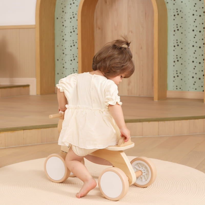 Drewniany jeździk trójkołowy od marki VIGA z serii PolarB to solidny i estetyczny pojazd zaprojektowany z myślą o najmłodszych dzieciach. Wykonany z trwałego drewna, z kierownicą w kształcie uroczego misia, zachwyca wyglądem i funkcjonalnością. Posiada blokadę skrętu kierownicy, dodatkową tablicę ochronną i cztery ciche koła EVA, które sprawdzą się zarówno w domu, jak i na zewnątrz.