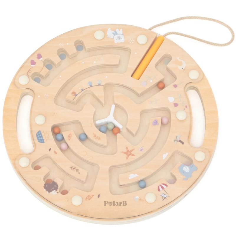 Labirynt magnetyczny od marki VIGA Wykonany z solidnego drewna i ozdobiony uroczymi ilustracjami przedstawiającymi 4 pory roku, zapewnia nie tylko świetną zabawę, ale również wspiera rozwój zdolności manualnych i logicznego myślenia. Dzięki magnetycznemu rysikowi dziecko może przesuwać kolorowe kulki przez labirynt, ćwicząc koordynację ręka-oko.