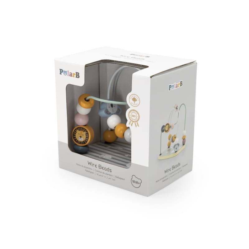 Drewniane pętle motoryczne to świetna zabawka sensoryczna, która pozwala dziecku trenować sprawność rączek. Przeplatając koraliki przez zakrzywione rurki, dziecko musi wykonywać odpowiednie ruchy, aby działania odniosły sukces. Tym sposobem dziecko uczy się jakie ruchy należy wykonywać i jak poprawnie kontrolować własne ciało, by wykonywało takie czynności, jakie mamy na celu. Zabawka składa się z drewnianej podstawy, na której ustawione są 4 rurki. Na rurkach nawleczone są kolorowe koraliki i kilka klocków z podobiznami zwierzątek, które na pewno przyciągną uwagę pociech.