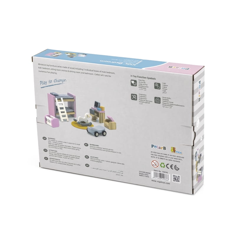 VIGA PolarB Zestaw Mebelków do Domku dla Lalek Pokój Dziecięcy