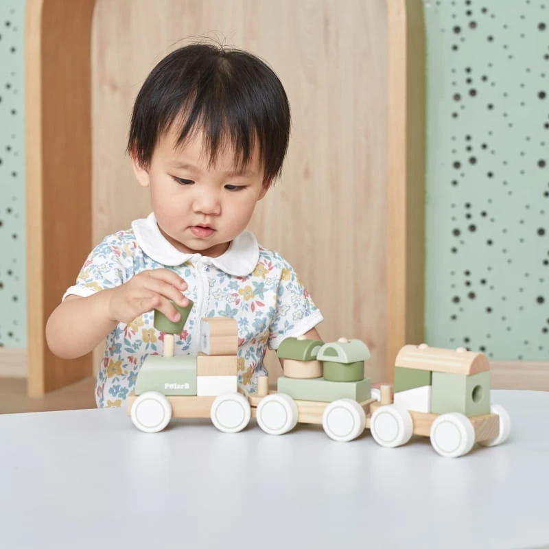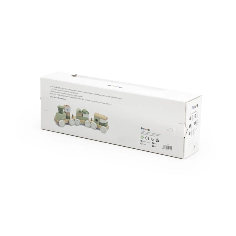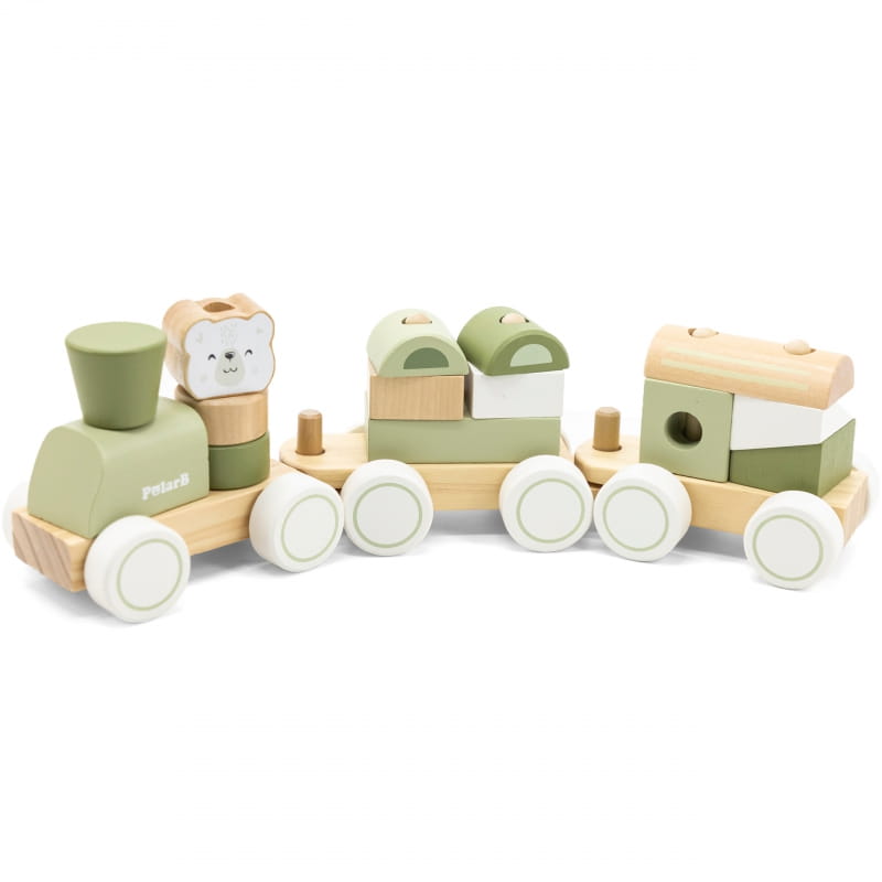 Zielona kolejka marki Viga z kolekcji PolarB to ciekawa zabawka która przynosi wiele frajdy. Składa się z 3 wagonów i 14 klocków o różnych kształtach. Dzięki swojej wyobraźni dzieci mogą tworzyć najróżniejsze kombinacje kształtów i kolorów. Wagoniki można łączyć lub bawić się nimi niezależnie. Układanie klocków rozwija u dzieci umiejętności motoryczne, koordynację ręka- ok oraz zręczność palców.