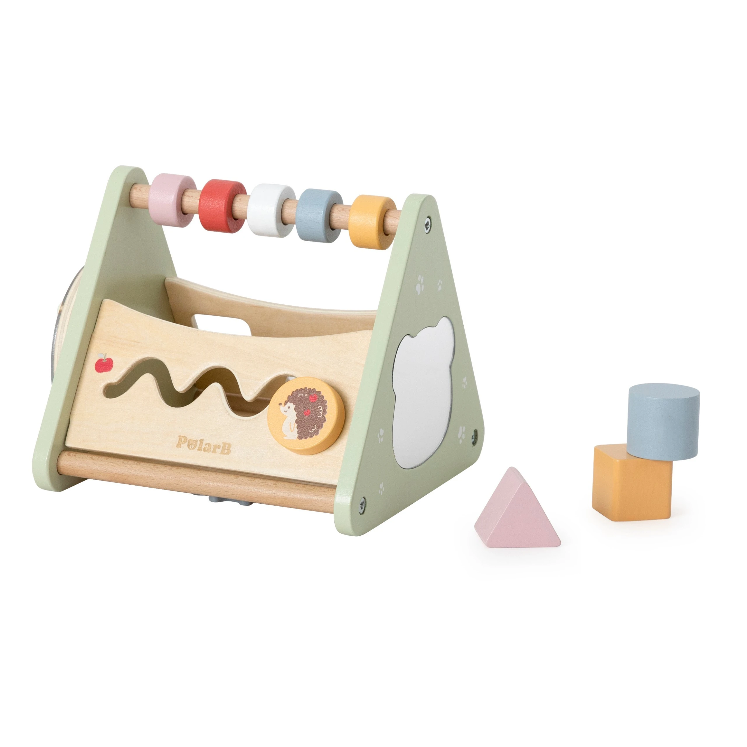 Trójkąt Aktywności to wszechstronna drewniana zabawka edukacyjna od marki Viga , która zapewnia dziecku długie godziny kreatywnej i rozwijającej zabawy. Dzięki pięciu stabilnym bokom oraz sześciu różnorodnym aktywnościom, maluch może odkrywać świat kształtów, kolorów i dźwięków z każdej strony. Zabawka została zaprojektowana tak, aby wspierać rozwój motoryki małej oraz koordynacji wzrokowo-ruchowej. Solidna konstrukcja umożliwia bezpieczną zabawę na każdej płaskiej powierzchni. Dodatkowym atutem jest wygodny uchwyt w postaci liczydła, który ułatwia przenoszenie.