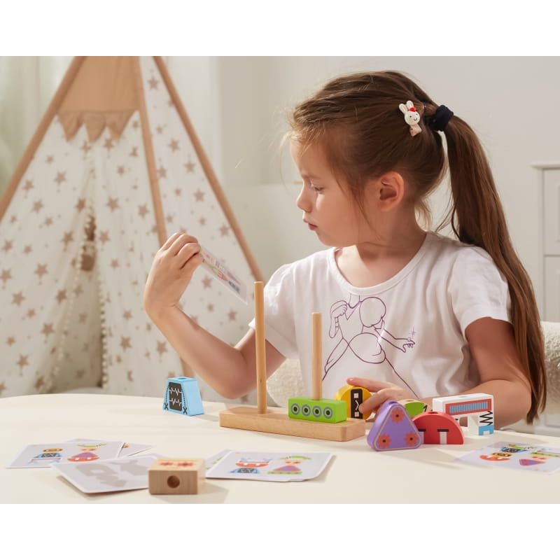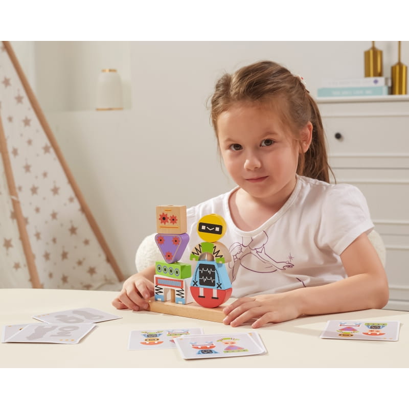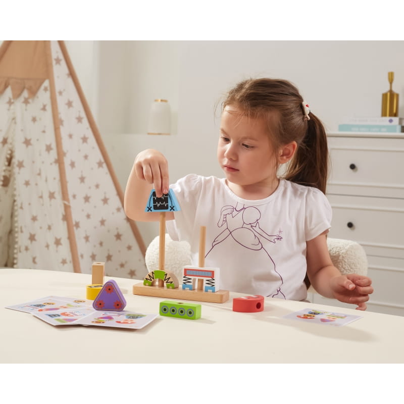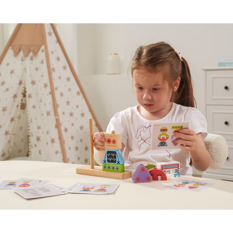 VIGA Układanka Piramidka Roboty + Wzory 8 el.