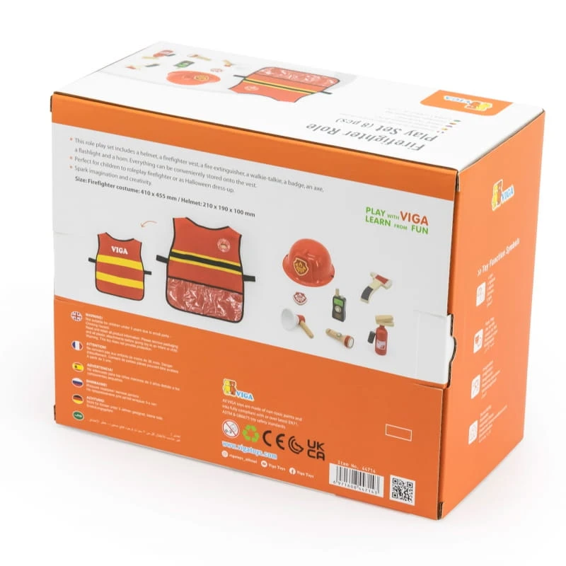 Zestaw małego strażaka od marki Viga, przeniesie twoje dziecko w magiczny świat, w którym będzie mogło stać się bohaterem jak w bajkach! Ten zestaw to otwiera drzwi do wyobraźni maluchów, w których każdy chłopiec i dziewczynka mogą przekształcić się w bohatera codziennego życia. Każdy element został zaprojektowany tak, aby był bezpieczny, trwały i idealny dla rosnących dłoni. Narzędzia te to nie tylko zabawa, ale także wspaniała okazja do nauki poprzez eksplorację i odgrywanie ról. Mali ratownicy dowiedzą się, jak ważna jest praca zespołowa i odwaga, jednocześnie rozwijając swoje umiejętności motoryczne, zapinając kamizelkę, zakładając hełm lub trzymając różne narzędzia. Wygodna kamizelka strażacka, zaprojektowana została w taki sposób aby w łatwy sposób trzymać w jej kieszeni drewniane akcesoria z zestawu. Ponad to kamizelka zawiera dwie osobne kieszonki, które idealnie sprawdzą się do noszenia w nich poręcznych akcesoriów.