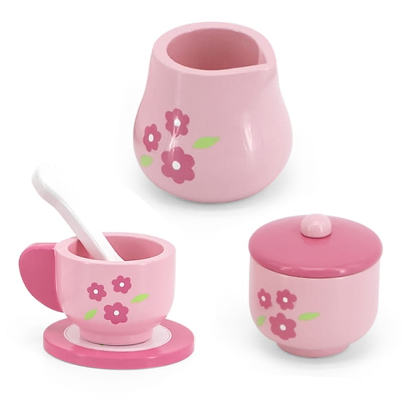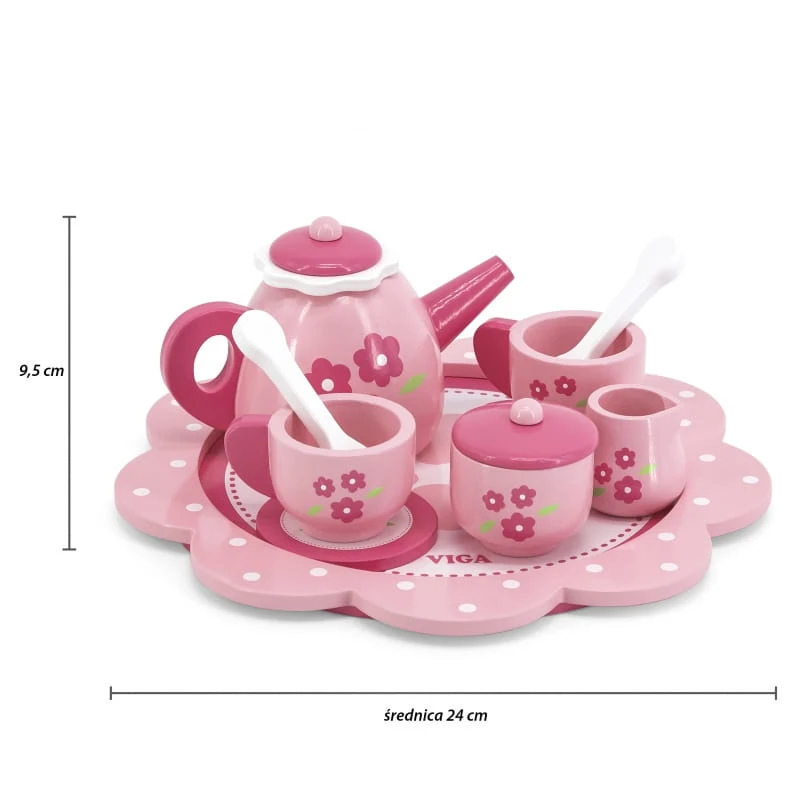 - - w skład zestawu wchodzi 12 elementów - imbryk na herbatę, dzbanuszek, cukiernica, filiżanki, spodeczki, łyżeczki i taca,