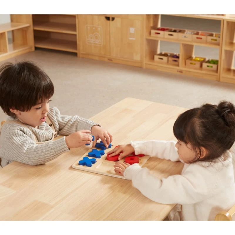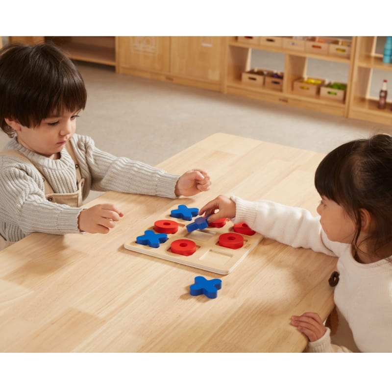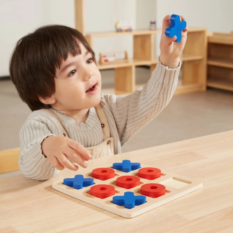 ✔️ Przyjemne w dotyku, kolorowe pionki X i O ułatwiające chwytanie małymi rączkami