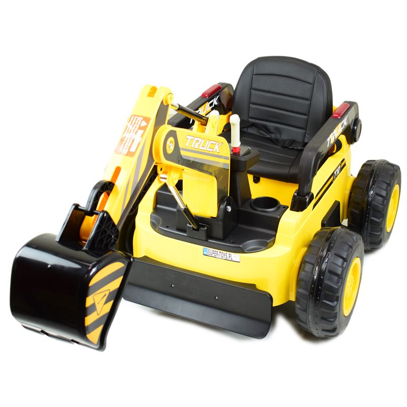 Pilot zdalnego strerowania | Tak, sterownie przód/tył, lewo/prawo z kontrola rodzicielską czyli w każdej chwili Rodzic może przejąć kontrolę nad pojazdem za pomocą pilota i skręcić kołami w lewo lub prawo lub zatrzymać pojazd za pomocą funkcji STOP, 3 prędkości jazdy. Obsługa koparki: poruszanie łyżką przód/tył poruszanie ramieniem przód/tył |