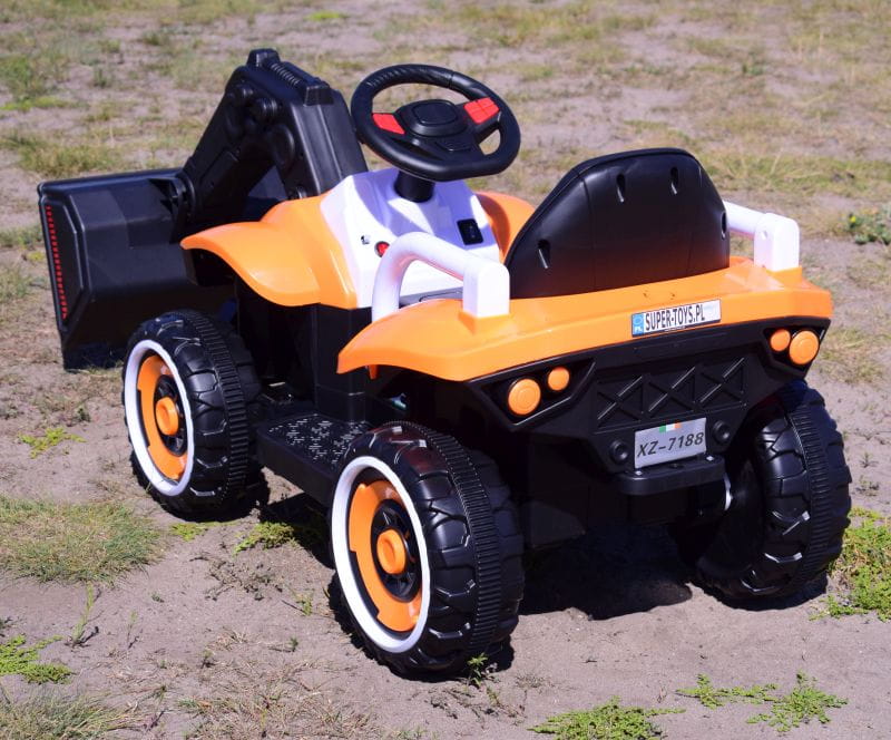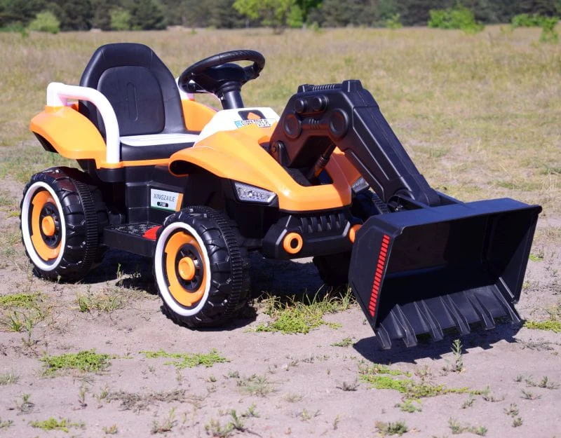SPYCHACZ NA AKUMULATOR z ruchomą elektryczną łyżką - możliwość jazdy pojazdem za pomocą silnika napędowego oraz sterowania łyżką/góra dółDodatkową atrakcją są wgrane w pamięć piosenki, dźieki oraz klakson.