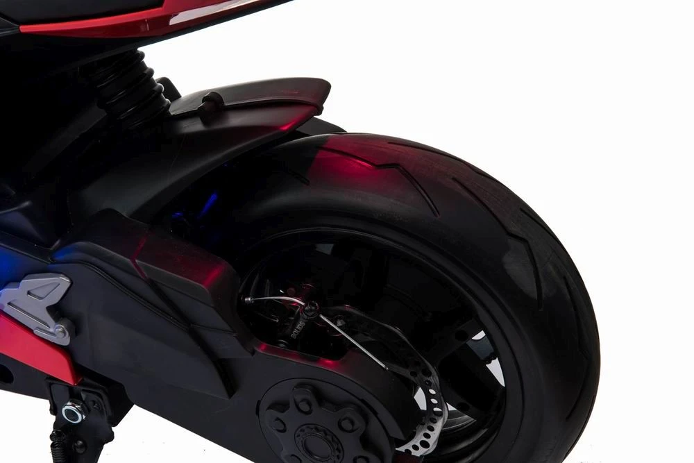 Motocykl posiada miękkie koła EVA, miękkie siedzenie i dwa metalowe amortyzatory dające komfort jazdy.