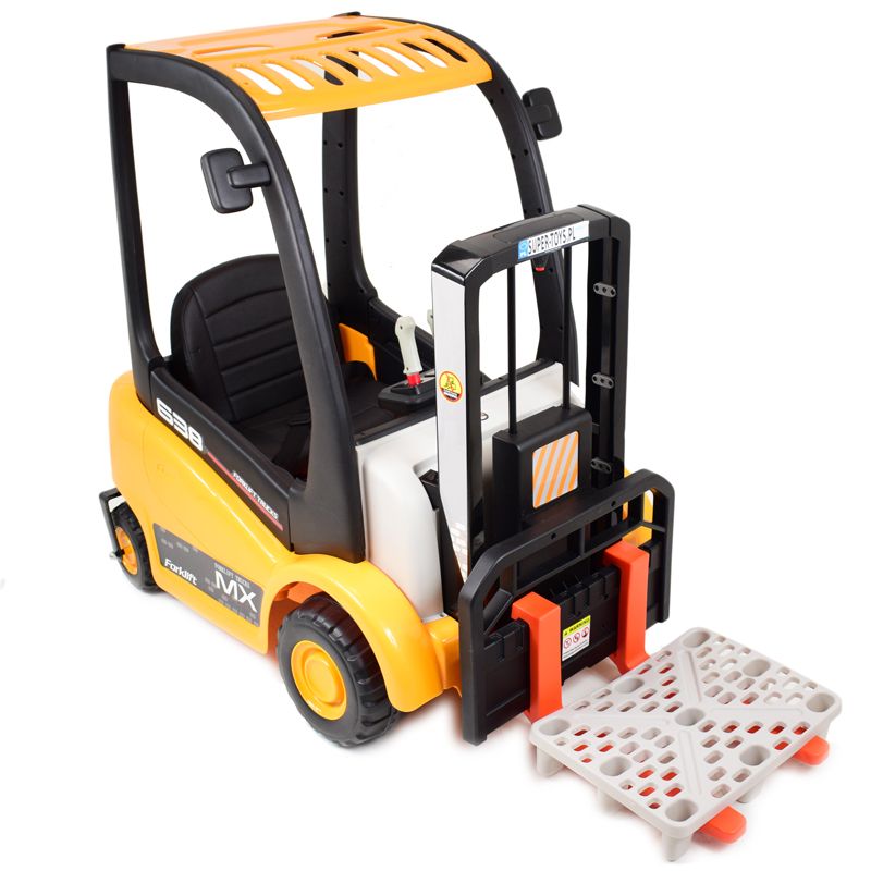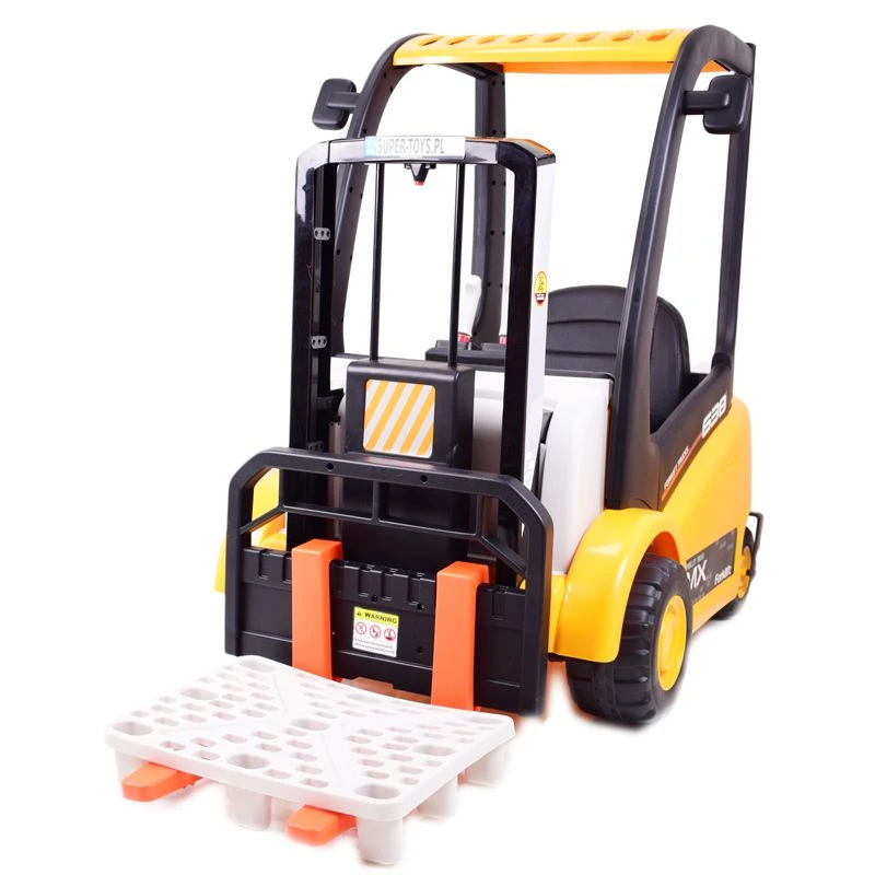 Najnowszy WIELKI WÓZEK WIDŁOWY Z OBROTOWYMI KÓŁKAMI/XMX638 zachwyci całą pewności zainteresuje młodego wielbiciela wózków widłowych - napędzanu jest 2 mocnymi silnikami o lącznej mocy 90 WAT STRONG2.