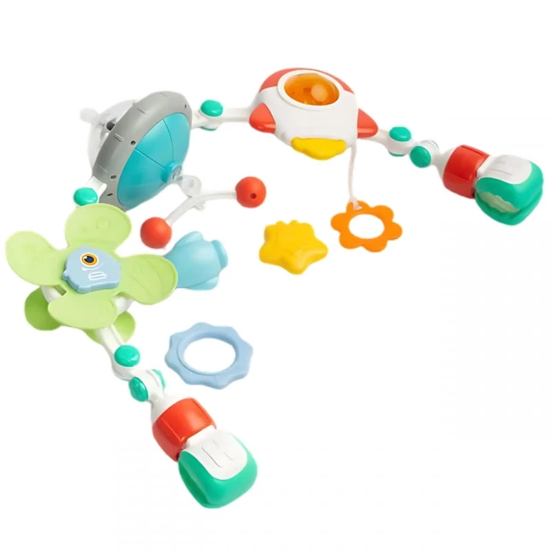 Pałąk Łuk z Zabawkami od marki WOOPIE z serii WOOPIE BABY to uniwersalna zabawka, która doda uroku i rozrywki każdemu wózkowi, fotelikowi czy łóżeczku. Jest niezwykle elastyczny, dzięki czemu bez problemu można go zamocować praktycznie wszędzie. Na pałąku znajdują się różne zabawki. Zabawka przykuwa uwagę i utrzymuje aktywność oraz ciekawość dziecka podczas przebywania w wózku czy foteliku. Interaktywny pałąk gra przepiękne kołysanki oraz świeci zmieniającymi się kolorowymi światełkami. Zaprojektowana by rozwijać ruchy całego ciała i oddziaływać na zmysły.