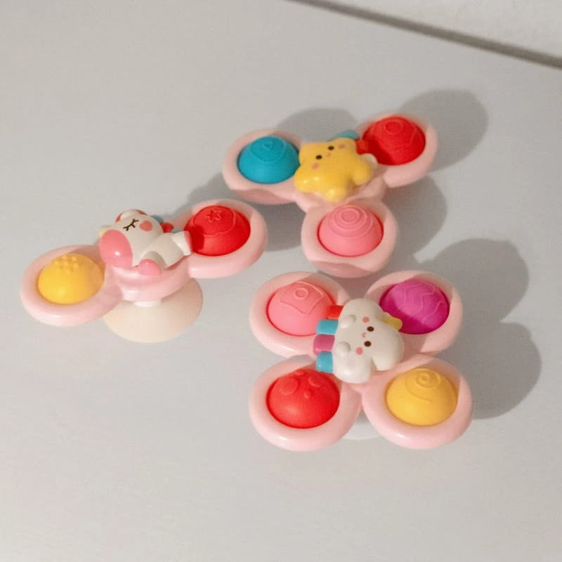 Zestaw Uroczych Spinnerów od marki WOOPIE zrobi na dziecku duże wrażenie. W zestawie znajdują się 3 szt. spinnerów: Jednorożec Gwiazdka Chmurka. Spinnery dziecko może zabrać i przyczepić wszędzie dzięki gumowym przyssawkom. Można przyczepić spinnera zarówno do szyby w czasie podróży oraz do wanny podczas kąpieli (zabawkę można moczyć). Łożyska spinnerów gwarantują długotrwały obrót. Odczepiane elementy pozwalają na łączenie ich w dowolny sposób. Zabawki posiadają gumowe elementy o różnej powierzchni co rozwinie zmysły dziecka oraz zadziała odstresowująco. Zabawa ćwiczy zwinność rączek oraz poprawia koordynację ręka-oko. Te zabawki mogą działać jako narzędzie do relaksacji i redukcji stresu, pomagając w osiągnięciu stanu spokoju i wyciszenia.