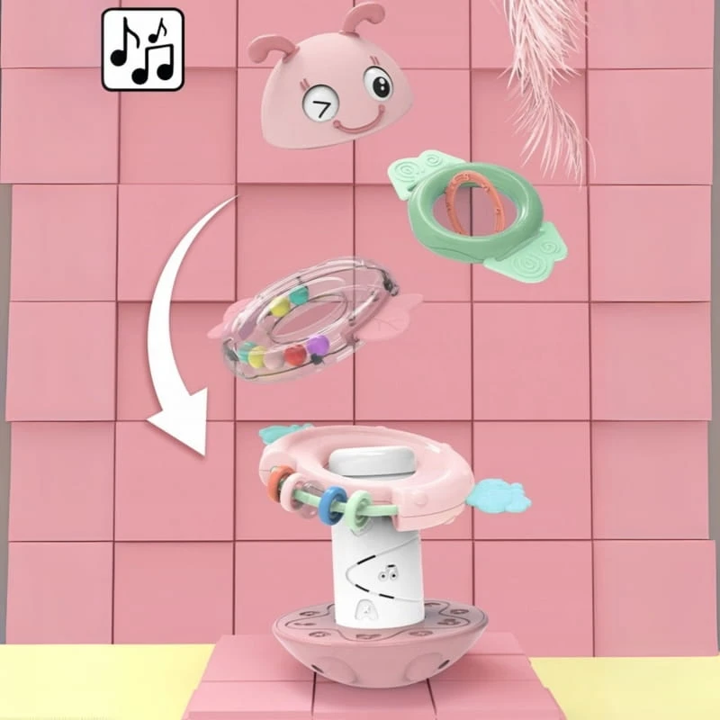 WOOPIE Baby Wańka Wstańka Zabawka Sensoryczna 2w1 Grzechotka Gryzak Różowa