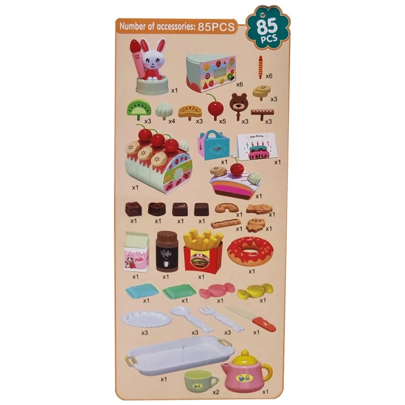 Zestaw Cukiernia od marki Woopie to idealna propozycja na spotkania z przyjaciółmi. Zestaw będzie idealnym atrybutem każdej małej gospodyni i małego gospodarza do zorganizowania niezapomnianego przyjęcia. Dziecko może wcielić się i poczuć się jak dorosły gospodarz domu. Zestaw zawiera aż 85 elementów W zestawie znajdziemy m.in. pięknie udekorowany tort urodzinowy i ciasto, które możemy pokroić na talerzyki i poczęstować swoich gości. Klimat urodzin nada świeczka z króliczkiem, która świeci i śpiewa klasyczne "happy birthday to you". Melodię można włączyć za pomocą guzika i dziecko może pomyśleć życzenie i zdmuchnąć świeczkę, która się wyłączy po dmuchnięciu. Niezjedzony tort można schować do pudełka. Każdy znajdzie coś dla siebie, można nawet zjeść frytki oraz napić się kawy bądź mleka. Wszystkie elementy zostały idealnie odwzorowane i wyglądają jak prawdziwe. Dziecko może napisać nawet życzenia na kartce urodzinową. Zabawy w odgrywanie ról pozytywnie rozwijają dziecko - rozwijają wyobraźnie i kreatywność oraz świadomość codziennego życia.