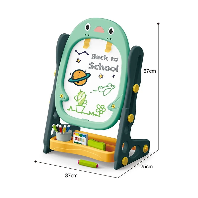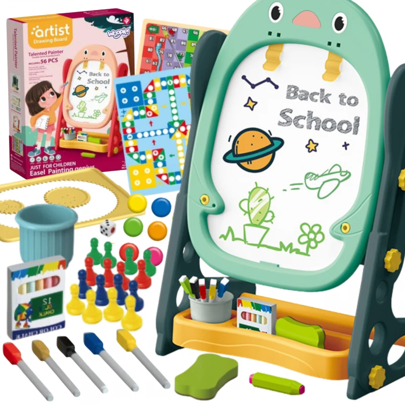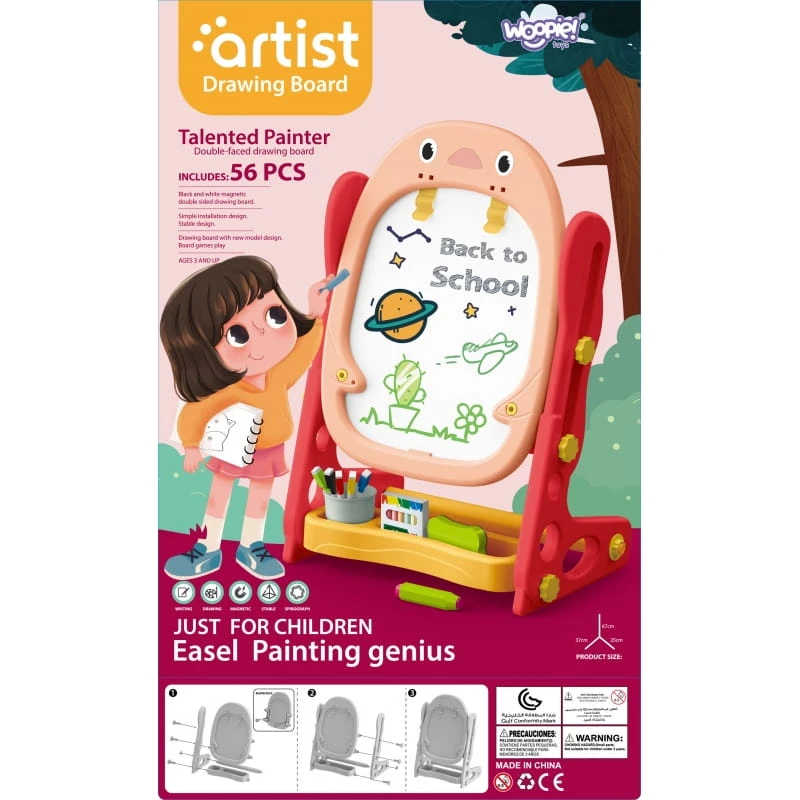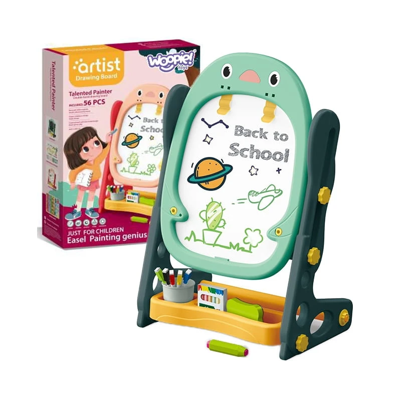 Dwustronna Tablica Magnetyczna do Rysowania od marki WOOPIE to wszechstronne narzędzie do nauki i pogłębiania zdolności artystycznych. Zestaw zawiera pełen pakiet akcesoriów do wszechstronnego użytkowania. Tablica jest prosta w montażu i dodatkowo posiada regulacje wysokości, dzięki czemu można ja dopasować do każdego dziecka. Zabawka jest niezbędna do codziennego rozwoju dziecka.