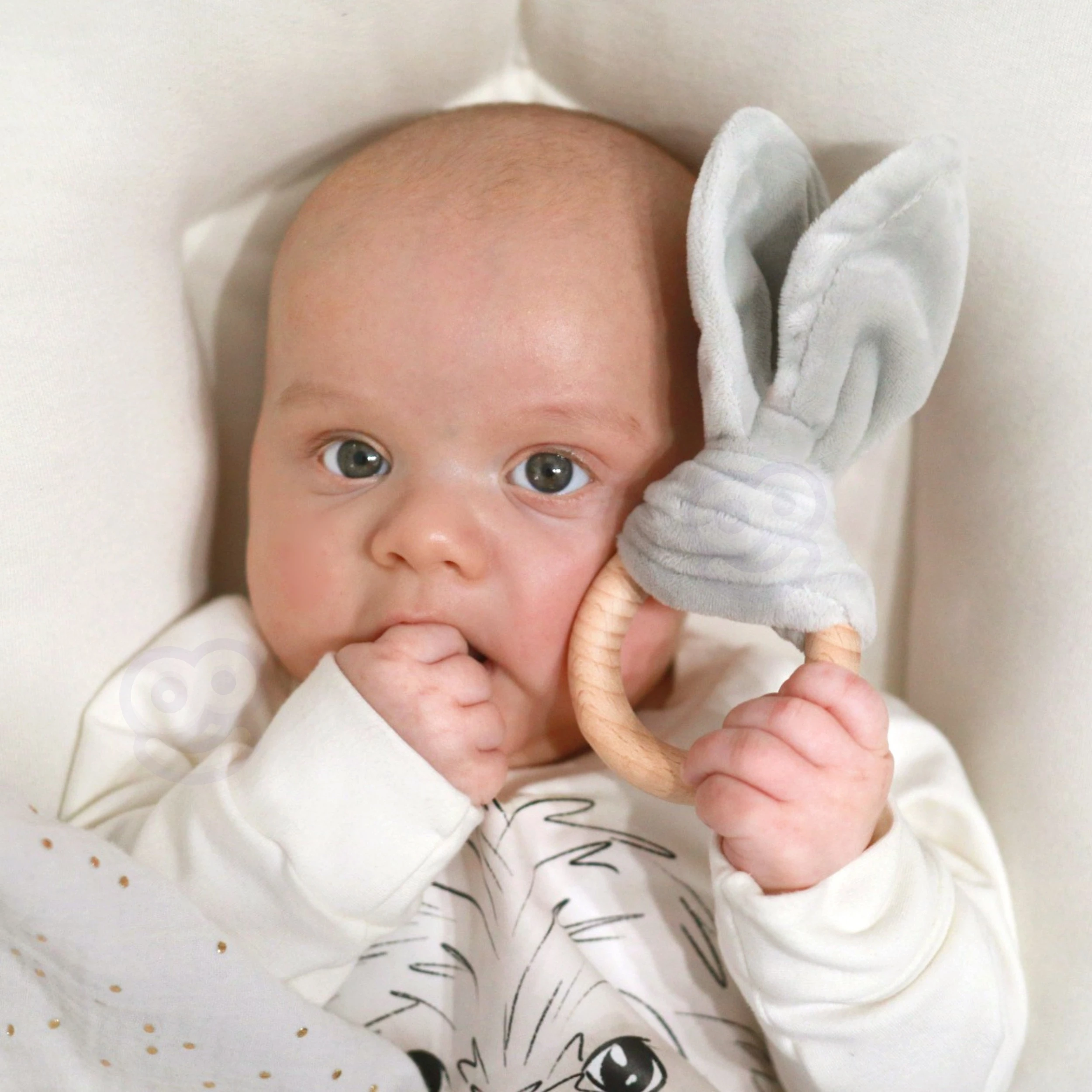- - Drewniany ekologiczny gryzak „Zajączek” – łagodzi ból dziąseł i wspiera rozwój zmysłu dotyku.