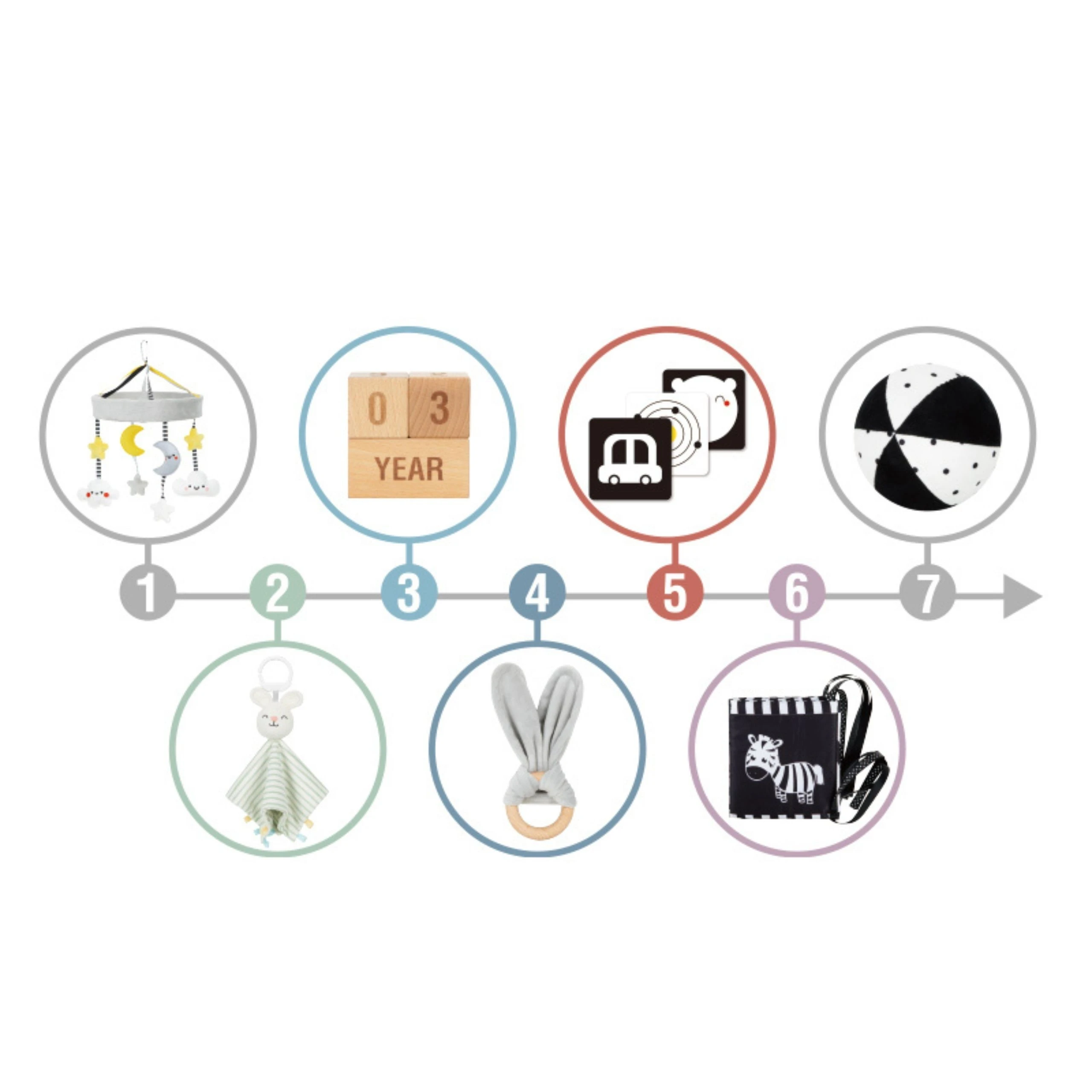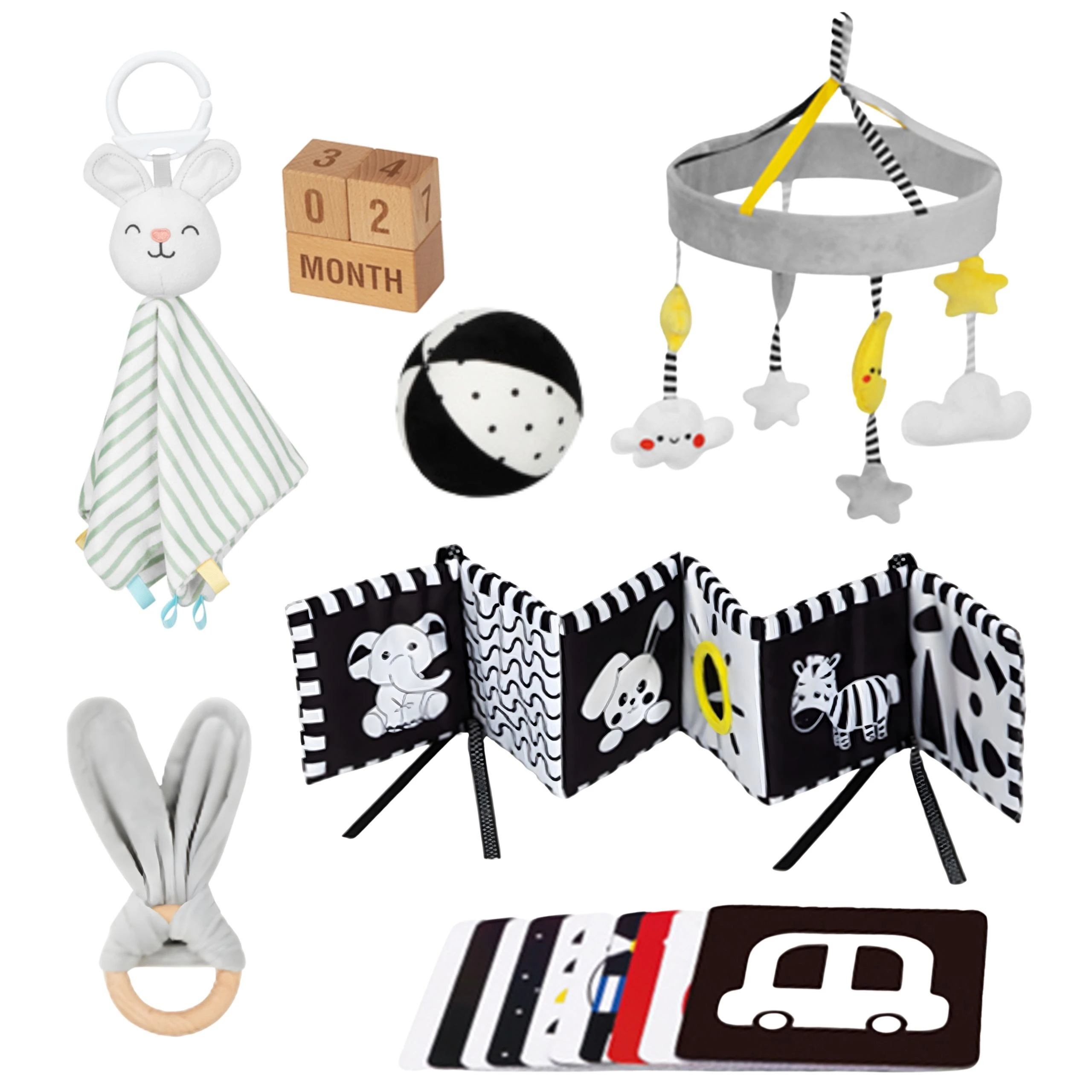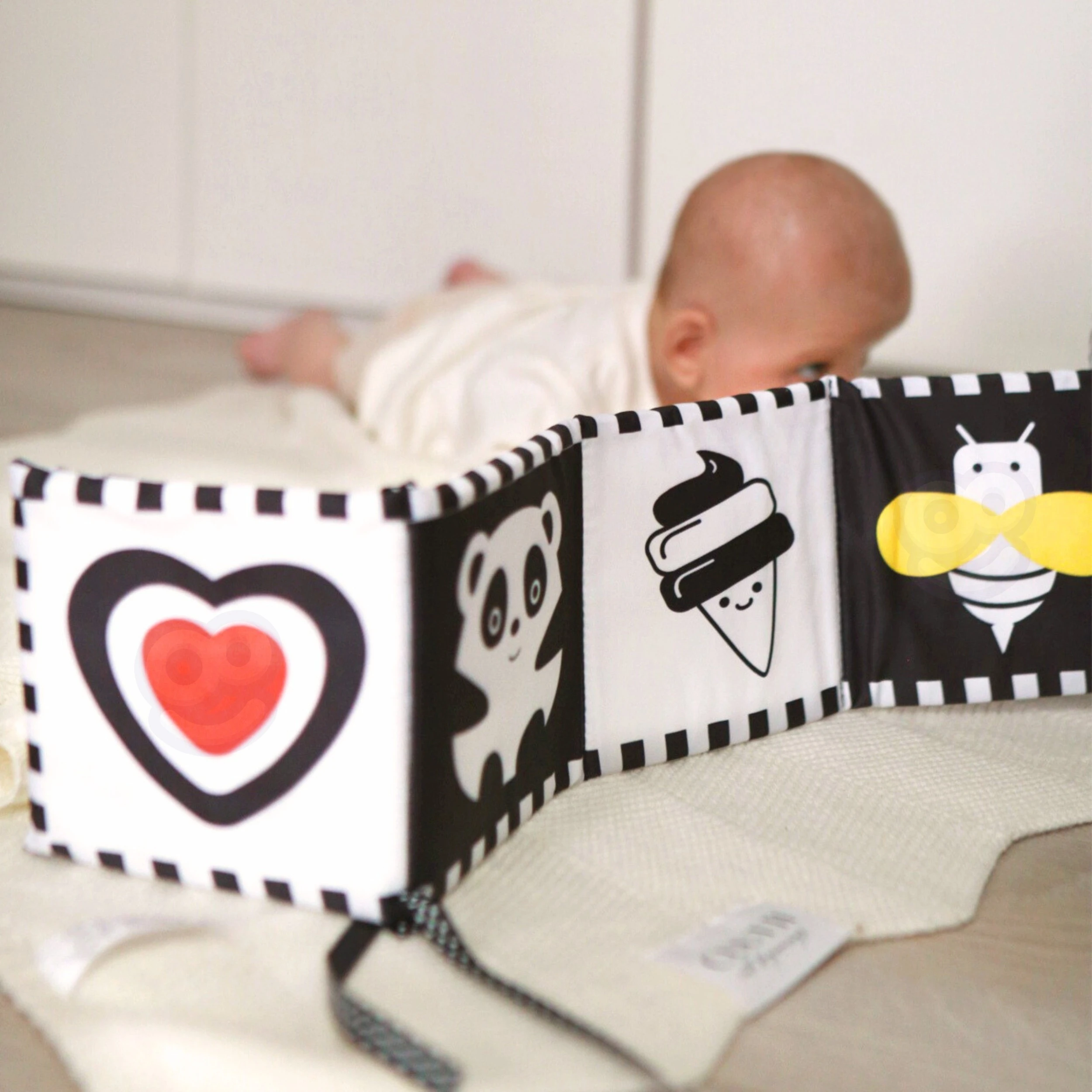 - - Dwustronne karty kontrastowe – wspierają rozwój wzroku i koncentrację niemowlęcia.