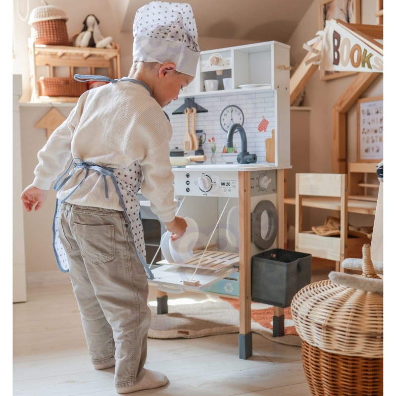 - - Z boku kuchni znajduje się pralka z koszem na pranie. To świetna okazja do rozwijania samodzielności i zrozumienia codziennych rytuałów