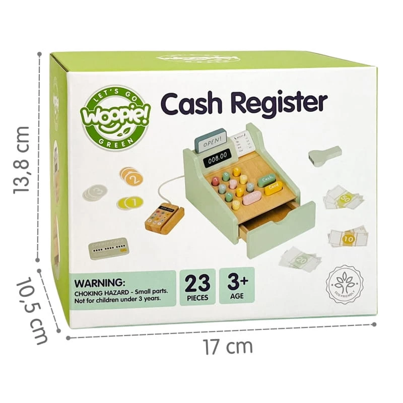 WOOPIE GREEN Drewniana Kasa Sklepowa Edukacyjna z Akcesoriami 23 el. FSC