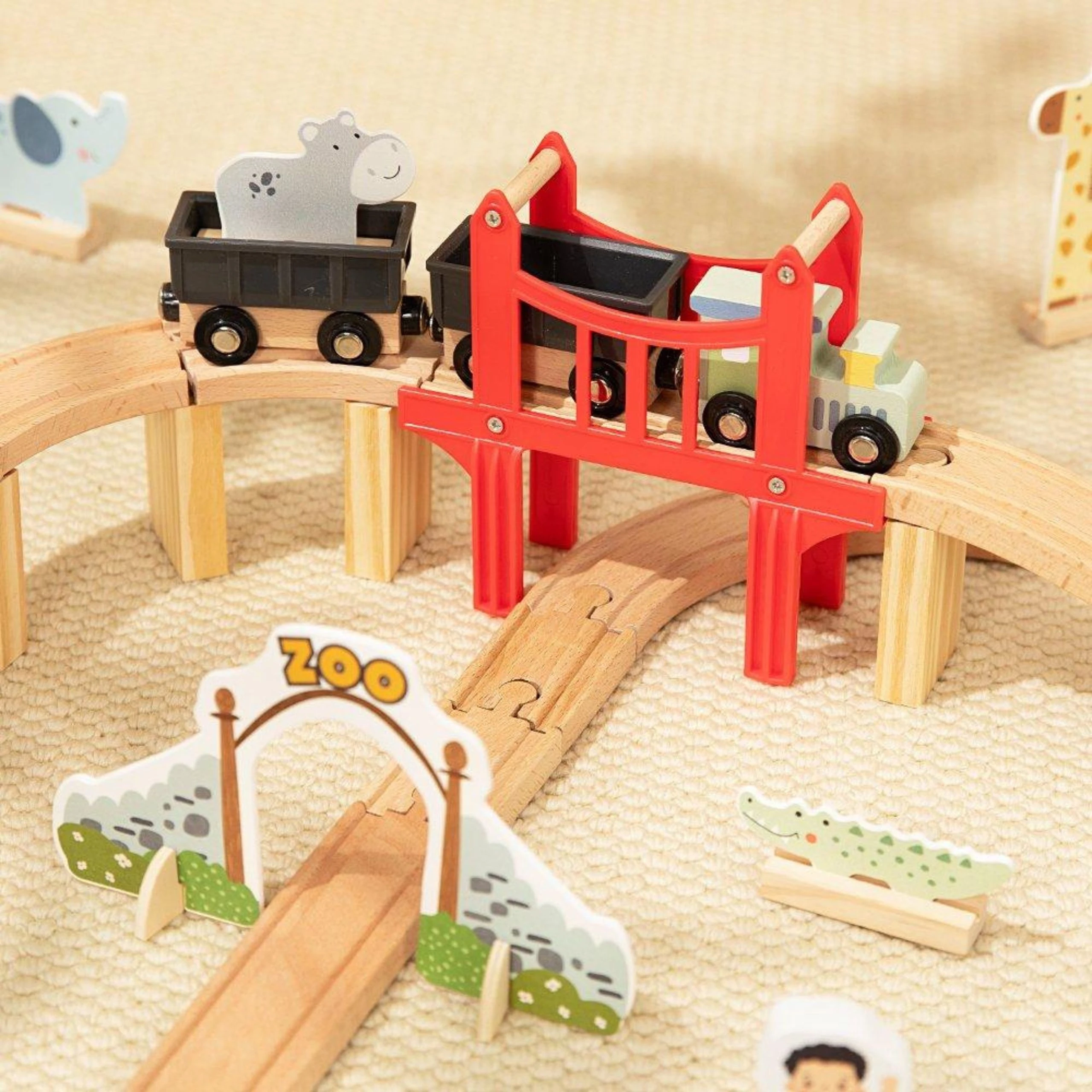 WOOPIE GREEN Drewniana Kolejka ZOO Zestaw XL Pociąg na Magnes Tor 60 el. FSC