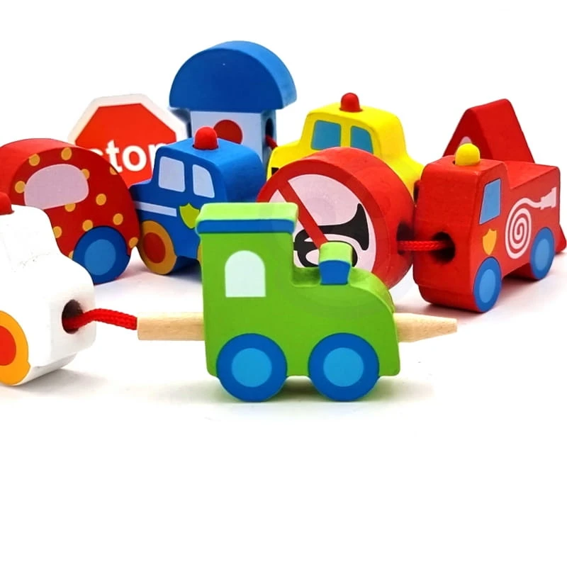 WOOPIE GREEN Drewniane Klocki do Nawlekania Pojazdy Samochody 13 el.