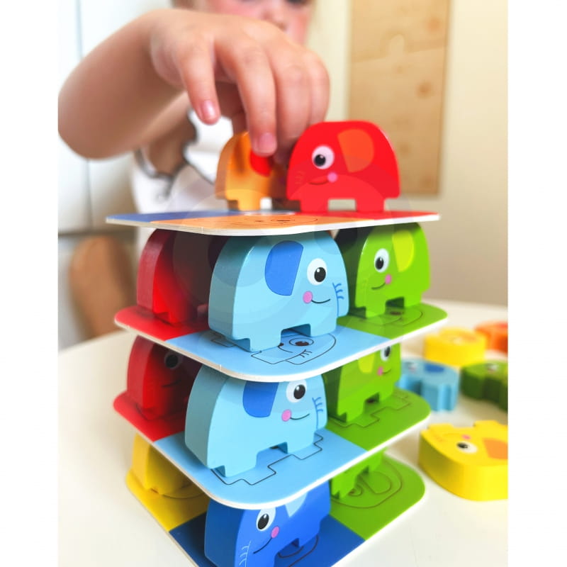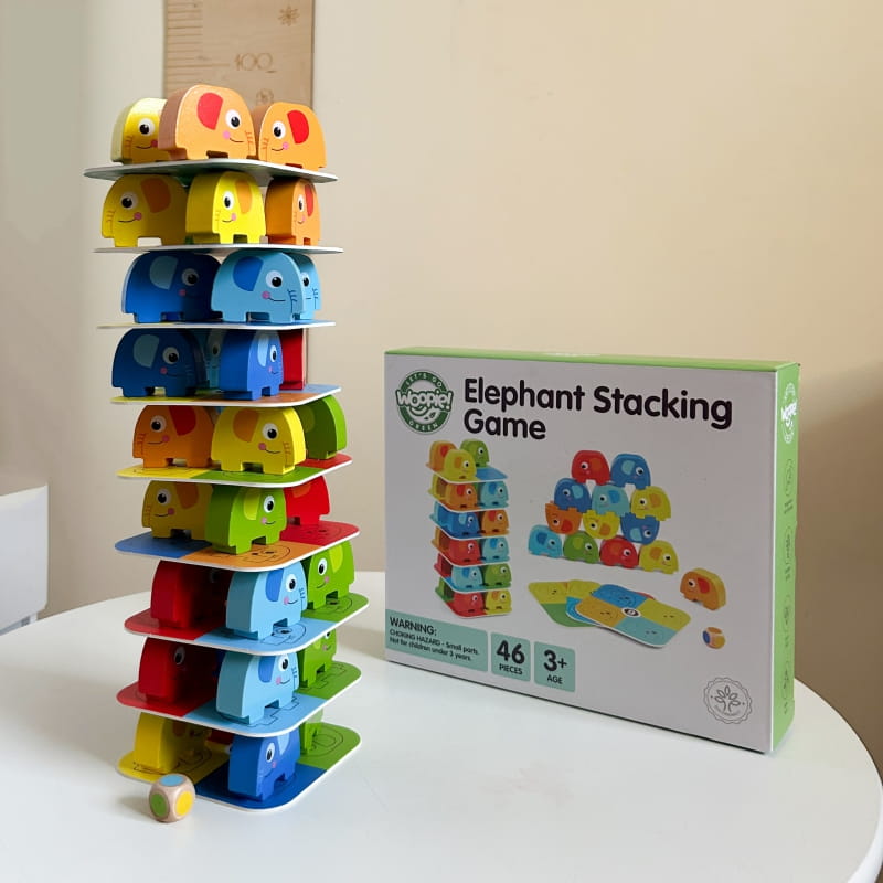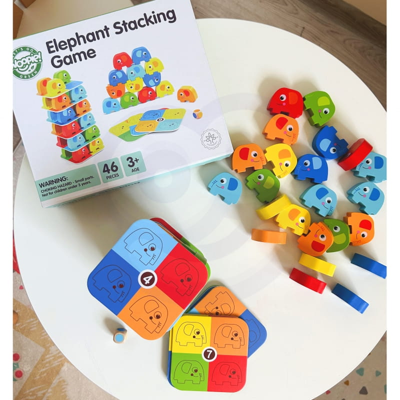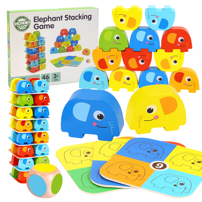 Układanka Słonik na Słoniku od Woopie to fascynująca gra składająca się z 46 elementów, w tym kolorowych kostek i kart do gry. Doskonały sposób na wspólne spędzenie czasu z rodziną. Wyraziste kolory i urocze kształty słoni sprawiają, że ta zabawka nie pozostanie niezauważona. Słonik na Słoniku oferuje dwie fascynujące możliwości zabawy - jako układanka słoni oraz alternatywa dla gry w stylu jenga.