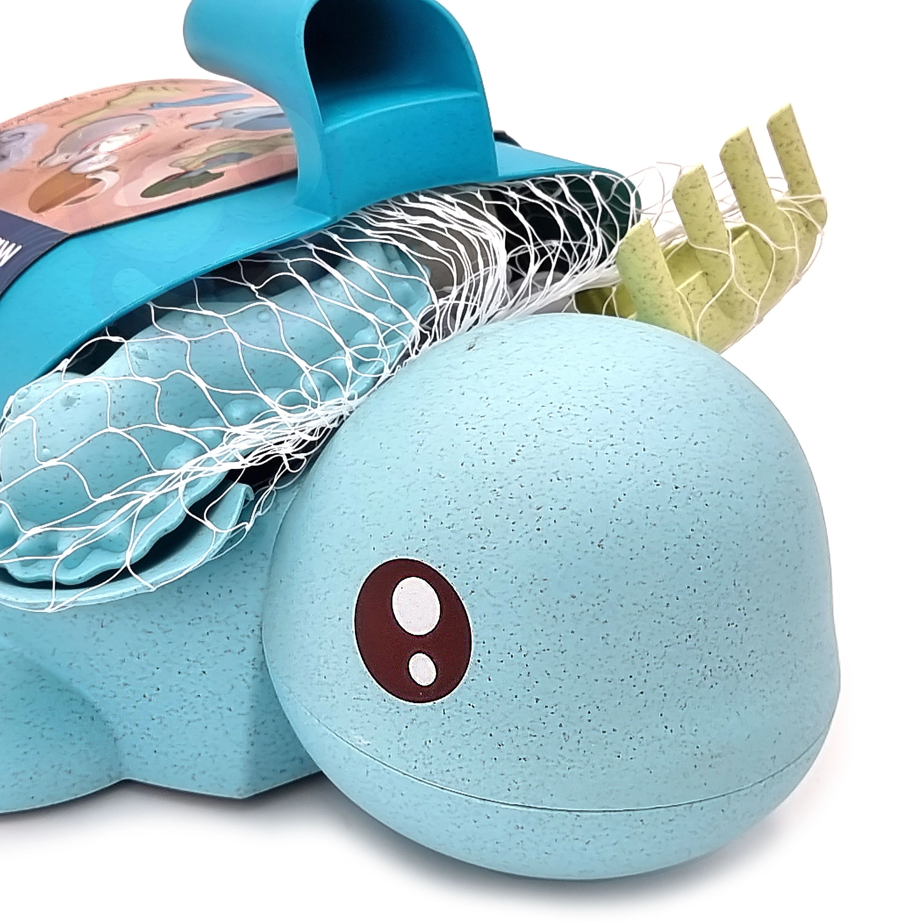 WOOPIE GREEN Zestaw 2w1 do Piasku i Wanny Żółwik Niebieski 8 el. BIODEGRADOWALNY ORGANICZNY MATERIAŁ
