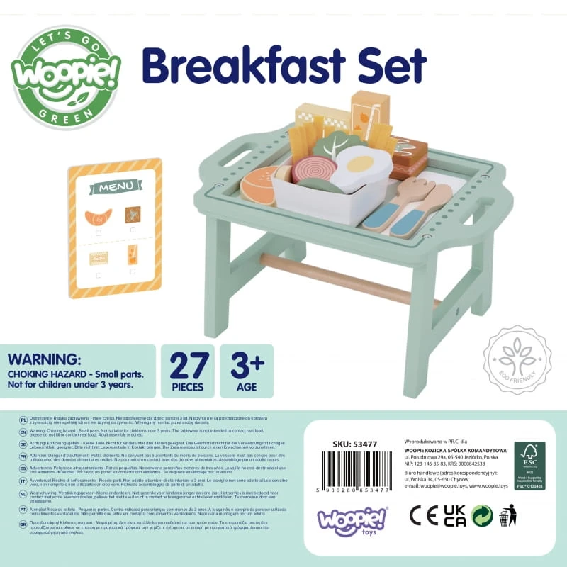 WOOPIE GREEN Zestaw Śniadaniowy i Restauracja - Zabawa w Zamawianie z Tacą i Akcesoriami