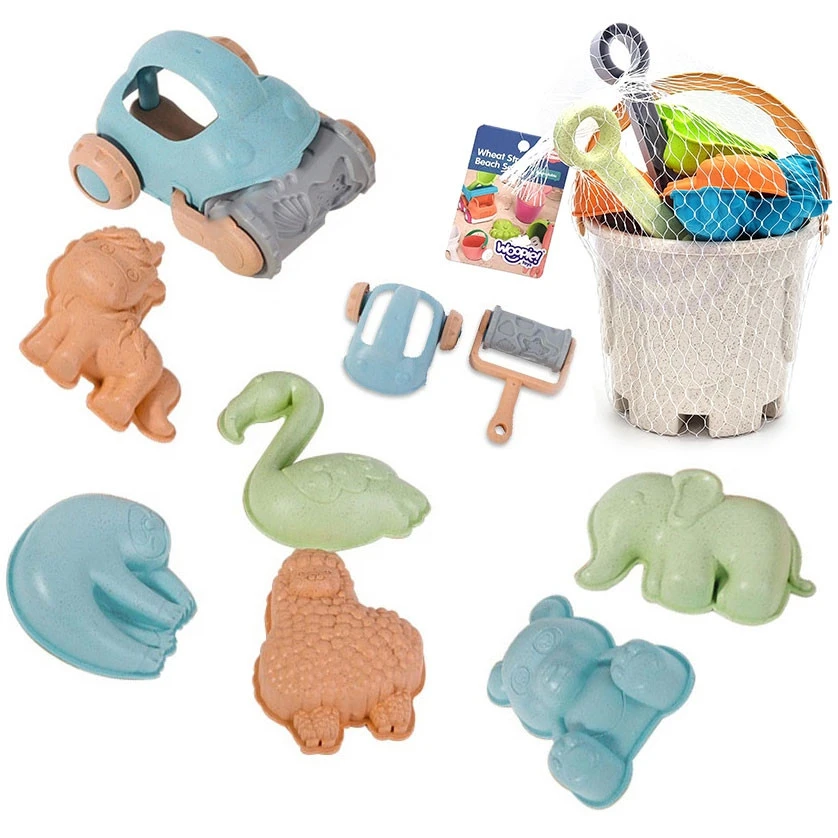 WOOPIE GREEN Zestaw do Piasku z Wiaderkiem i Samochodzikiem 10 el. BIODEGRADOWALNY ORGANICZNY MATERIAŁ
