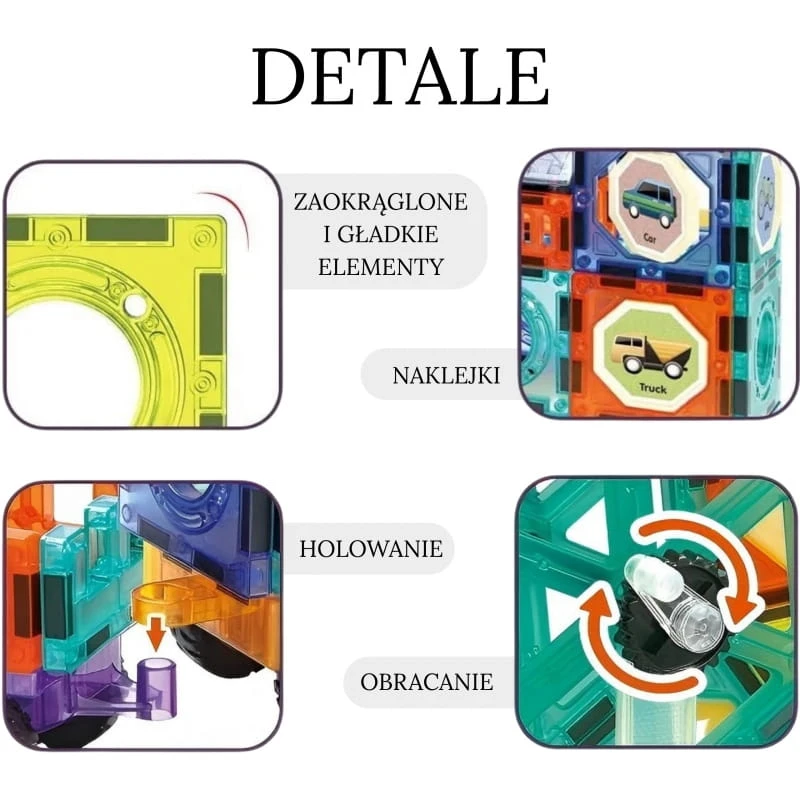 - - Silne magnesy umożliwiające stabilne i różnorodne konstrukcje