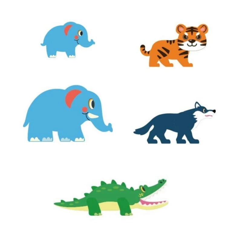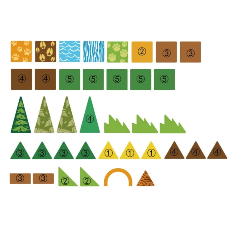 - - Tematyka zestawu: dżungla i zwierzęta (słoń, tygrys, krokodyl, wilk).