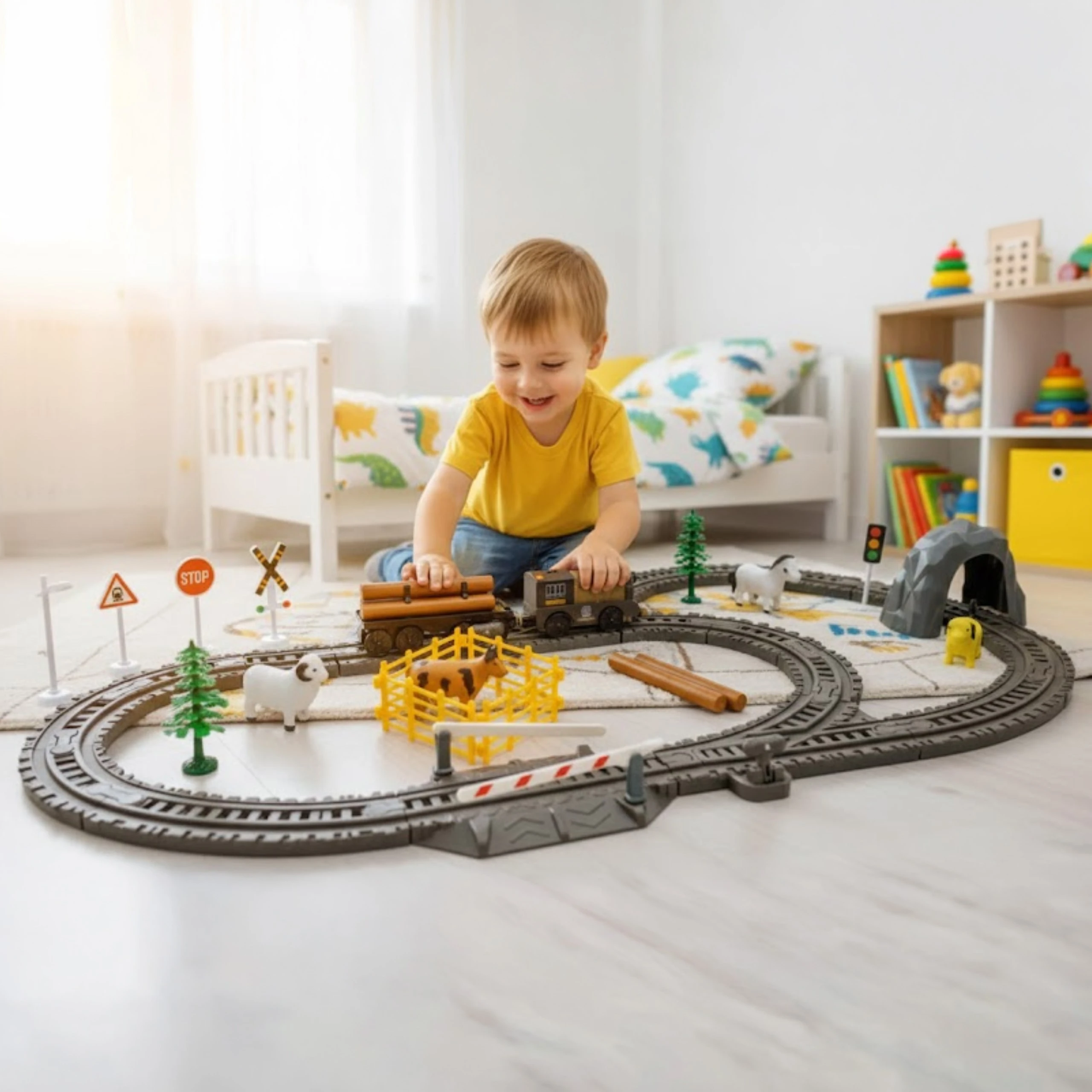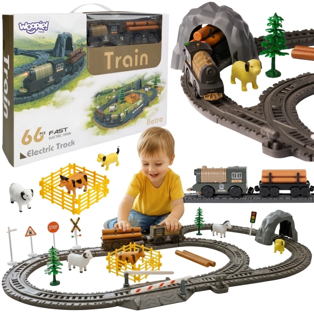 WOOPIE Kolejka Elektryczna Lokomotywa Retro Farma Tor XL 66 el.