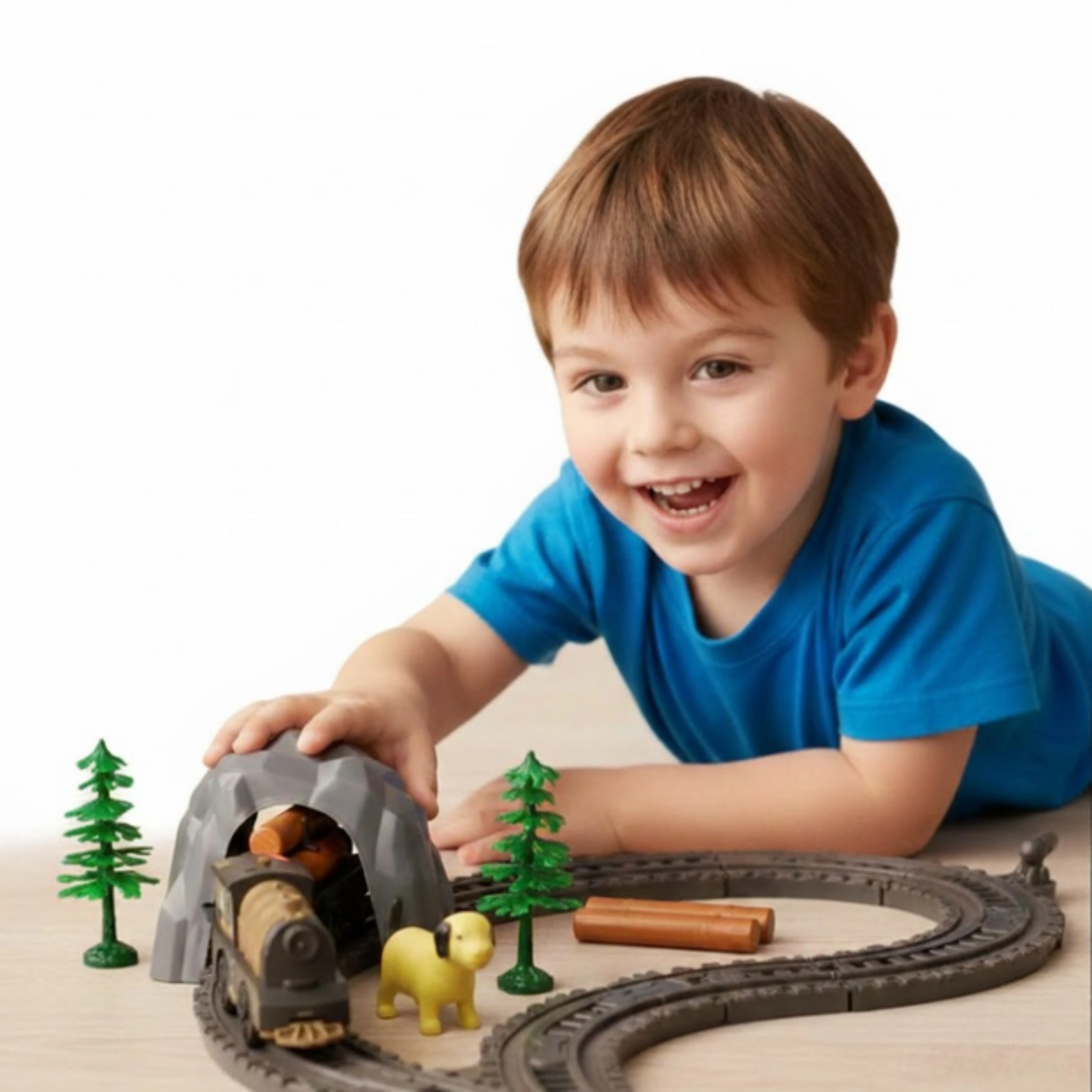- - Lokomotywa zasilana jest na baterie, co zapewnia mobilność i bezpieczną zabawę bez kabli.