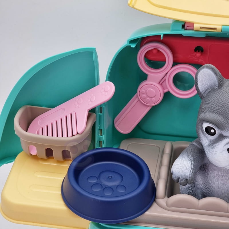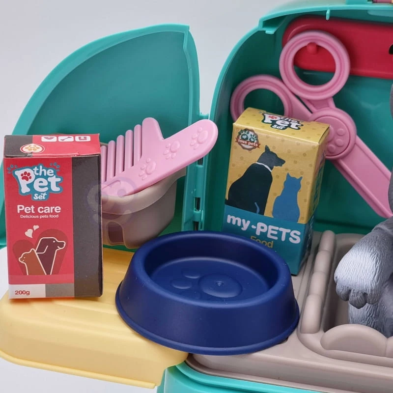 Przenośny Zestaw Pielęgnacyjny dla Pieska od marki WOOPIE pozwoli Twojemu dziecku zadbać o swojego ulubionego pupila. Możesz wszędzie zabrać swojego pieska w wygodnym przenośnym plecaku: w podróż, na plac zabaw czy do przedszkola. Plecak posiada uchwyt do podnoszenia oraz specjalne zamknięcie, które nie pozwoli otworzyć się kabinie podczas noszenia i zapewni maksymalne bezpieczeństwo zwierzakowi. Zestaw pielęgnacyjny 2w1 zawiera: figurkę pieska, plecak, pasek (do zakładania kabiny na plecy), miskę, nożyczki, grzebień, koszyk na akcesoria, 2 pudełeczka na karmę, szampon, zlew, kran, półka i wieszak. Zestaw zawiera wszystko co potrzebne do pielęgnacji pupila. Dziecko może umyć i nakarmić swojego pieska. Dziecko wcielając się w opiekuna lub weterynarza rozwija swoją wyobraźnie oraz poczucie empatii. Możliwe, że zabawka będzie początkiem do rozwinięcia pasji i drogi do zostania weterynarzem.