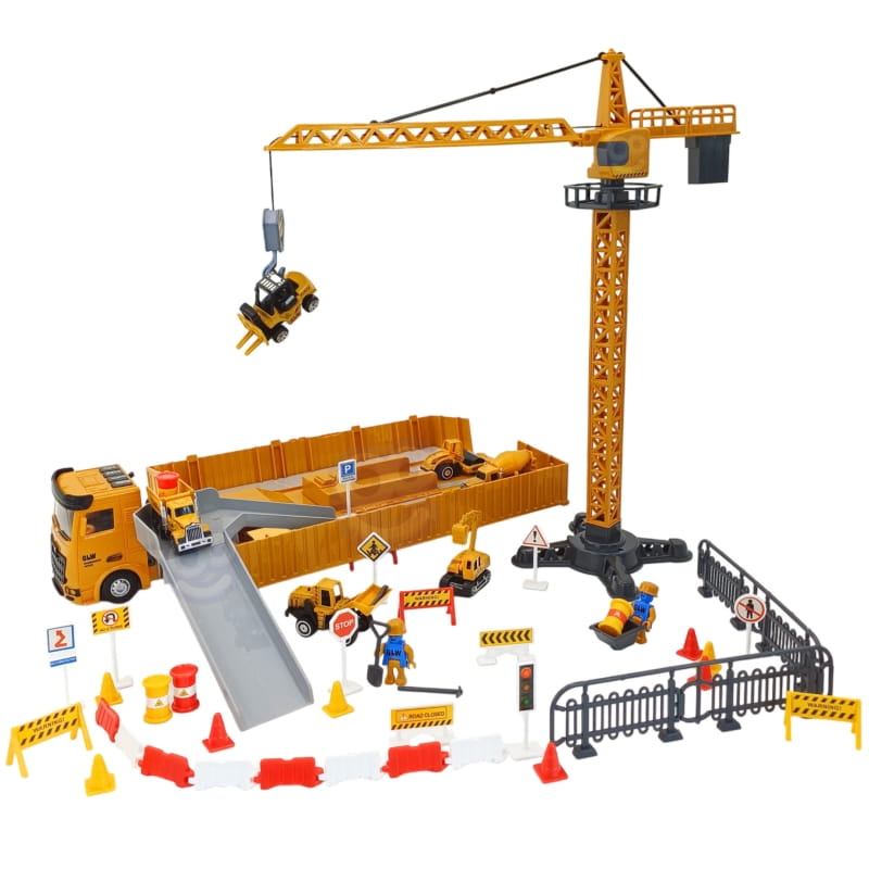 Samochód Ciężarowy 6 w 1 Zestaw Budowy Dźwig Resoraki Akcesoria od marki WOOPIE to Imponujący, duży samochód, który w mgnieniu oka przekształca się w ogromny plac budowy. Wysoki, stabilny dźwig z metalowym obciążnikiem przeniesie materiały w odpowiednie miejsce, a umieszczone znaki zapewnią bezpieczeństwo na budowie. Ta zabawka zagwarantuje godziny wspaniałej zabawy, która na pewno nie będzie się nudzić