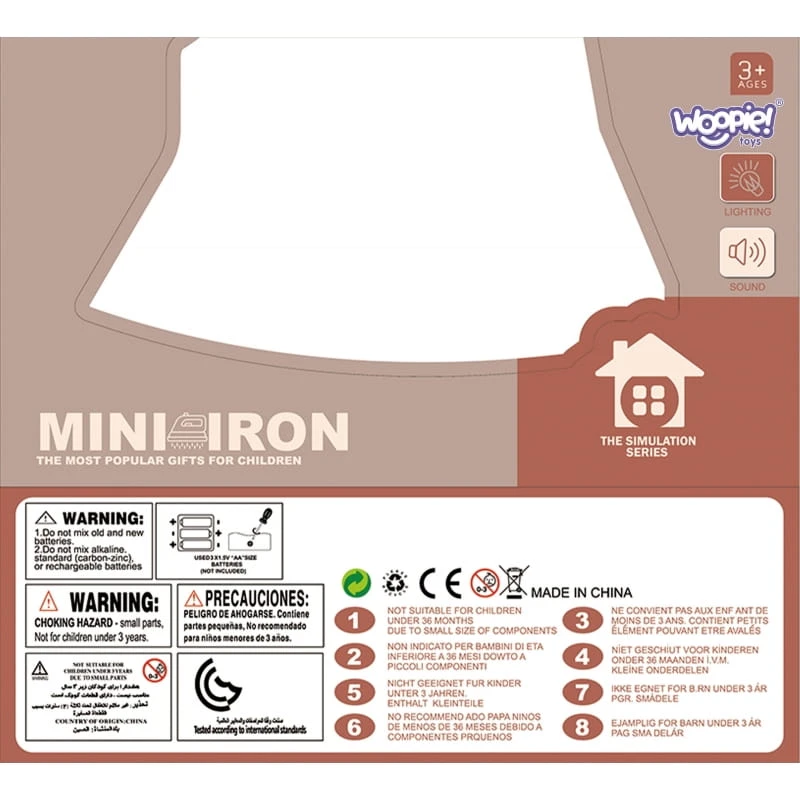 Żelazko ze Spryskiwaczem od marki WOOPIE doskonale imituje rzeczywiste urządzenie, a jednocześnie jest to zabawka bezpieczna dla dzieci, ponieważ nie nagrzewa się. Zabawka została wyposażona w wiele funkcji, które urozmaicą zabawę: świecącą lampkę LED, efekty dźwiękowe oraz funkcję spryskiwania po napełnieniu żelazka wodą. Zabawka działa także bez napełniania wodą. Jest to doskonała zabawka dla dzieci, które uwielbiają naśladować rodziców podczas codziennych czynności.