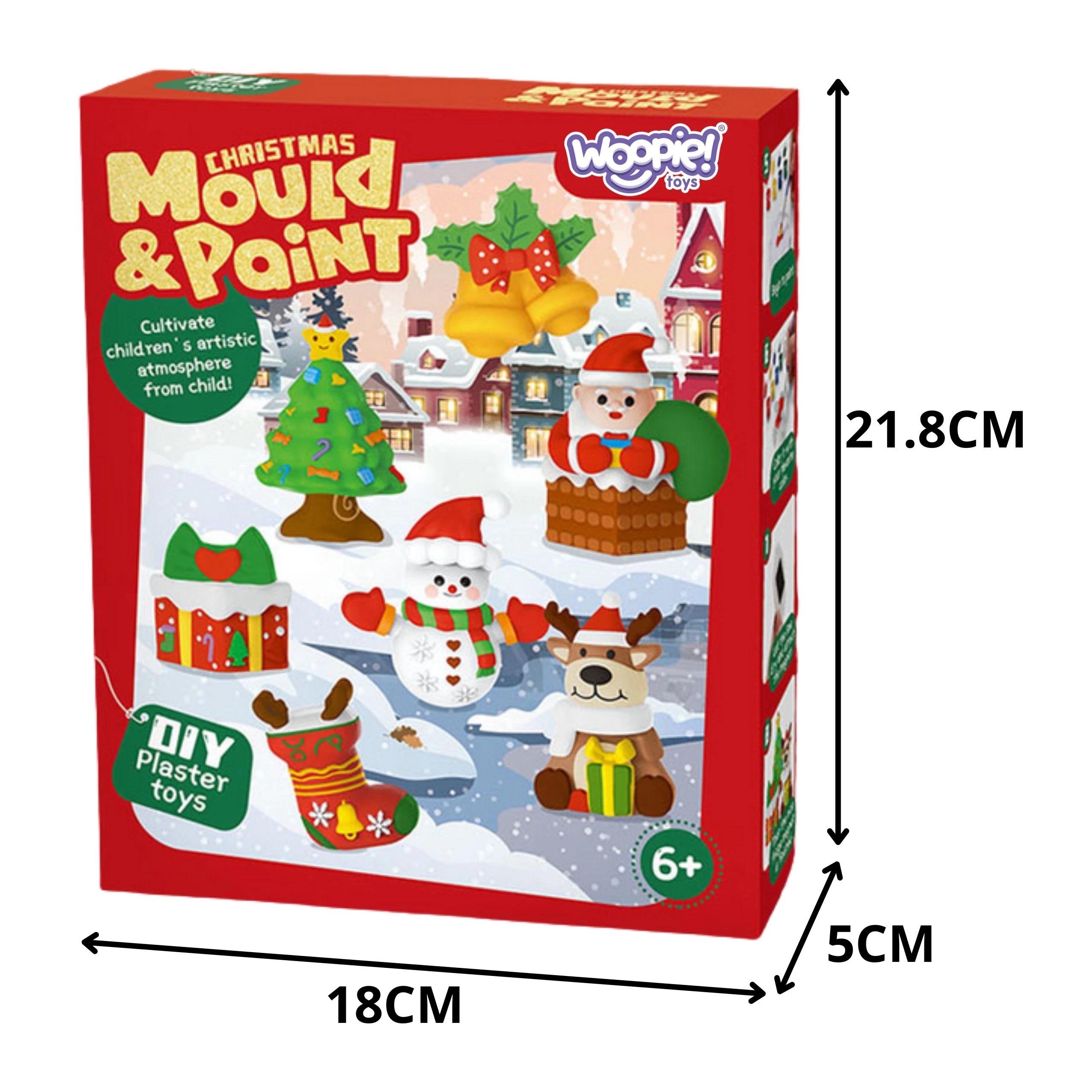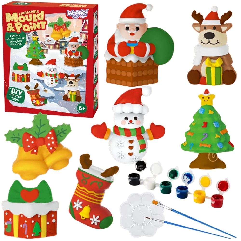 WOOPIE Zestaw Kreatywny z Farbami DIY Zrób Odlewy Gipsowe Figurki i Pomaluj - Zestaw Świąteczny