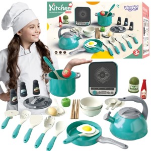 WOOPIE Zestaw Małego Kucharza Indukcja Garnki Patelnia Czajnik Zielony 30el.