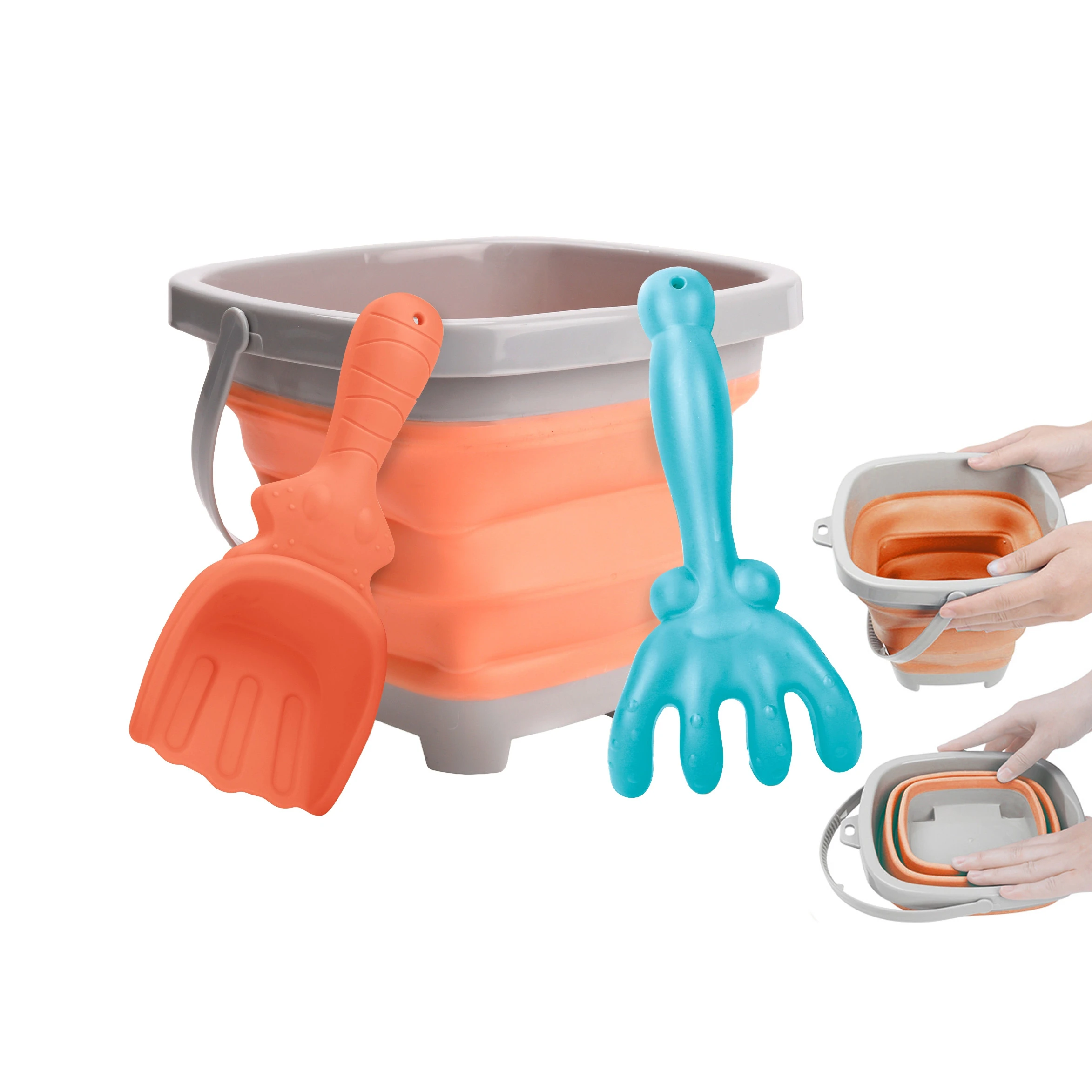 WOOPIE Zestaw Wiaderko Składane z Grabkami Łopatką Pomarańczowe