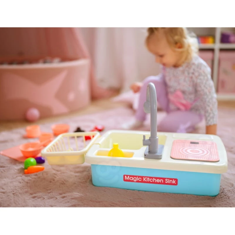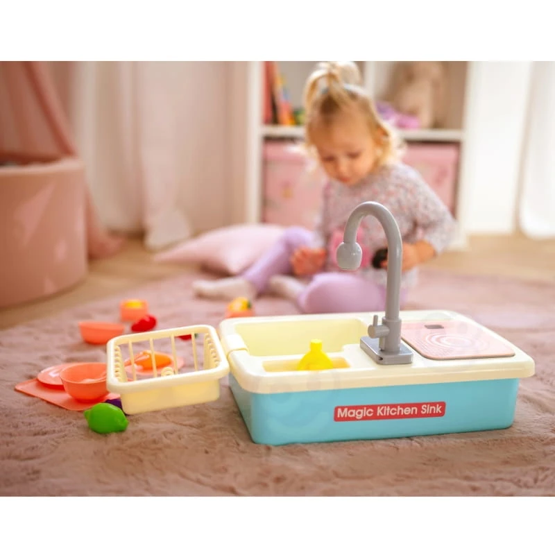Zlewozmywak Kuchenka 2w1 od marki WOOPIE pozwoli dzieciom gotować i zmywać tak jak ich rodzice - naśladować od najmłodszych lat! Zabawka jest doskonale odwzorowana, dzięki czemu dziecko ma wrażenie, że wykonuje prawdziwe czynności kuchenne.Posiada ruchome elementy jak kurek od kranu, z którego leci prawdziwa woda. Wystarczy wlać do misy modę i zobaczyć jak dziecko się bawi, a po wszystkim wystarczy opróżnić dolną misę. Dodatkowo owoce i warzywa są połączone rzepem, dzięki czemu twoje dziecko może przekroić je na pół, jak prawdziwe produkty! Zabawa w gotowanie, zmywanie naczyń i wykonywanie podobnej pracy, pomaga dzieciom nabrać poczucia odpowiedzialności i samodzielności, która jest ważną częścią uczenia się społeczno-emocjonalnego.