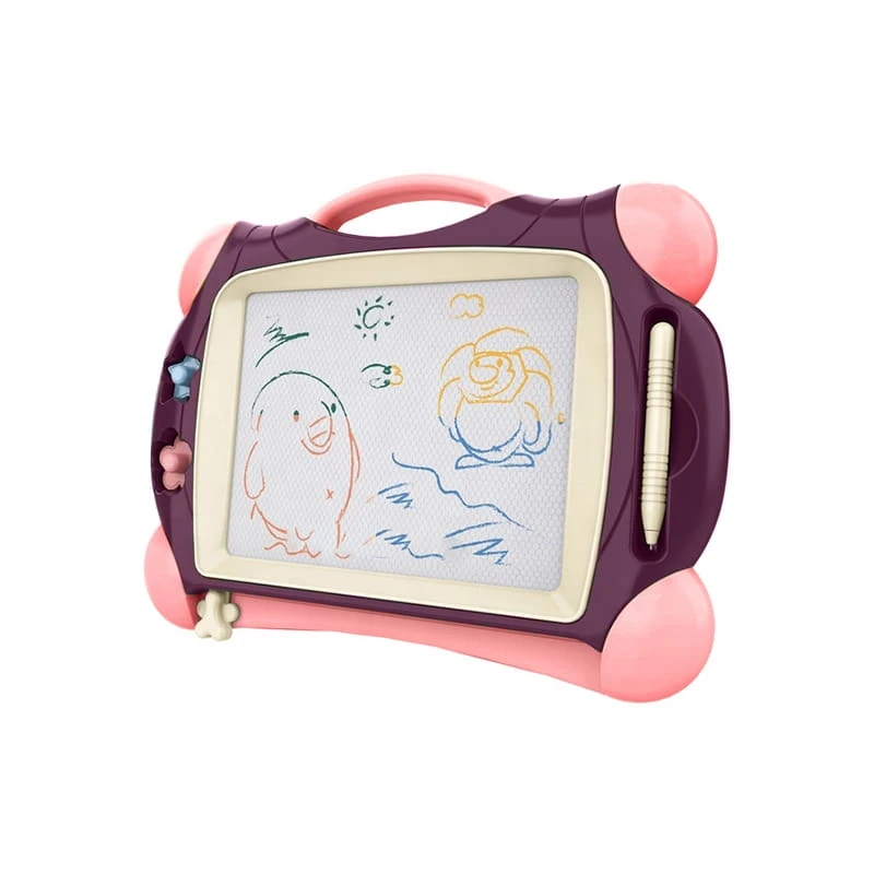 Znikopis Tablica Magnetyczna daje możliwość kreatywnej zabawy na długi czas! Tablica zachęca do pisania i rysowania. Rysowanie pozwoli wyciszyć i uspokoić się Twojemu dziecko. Znikopis pozwala na tworzenie nieskończonej ilość obrazków – wystarczy przejechać specjalnym suwakiem, a rysunek zniknie i można rysować od nowa! Zestaw dodatkowo zawiera wygodny magiczny długopis oraz 2 stempelki, które urozmaicą dzieło. Tablica posiada wygodny uchwyt, dzięki czemu dziecko może zabrać ją wszędzie. Znikopis rozwinie u dziecka zdolności manualne, wyobraźnie, kreatywność oraz da szansę na rozwinięcie artystycznej strony dziecka!