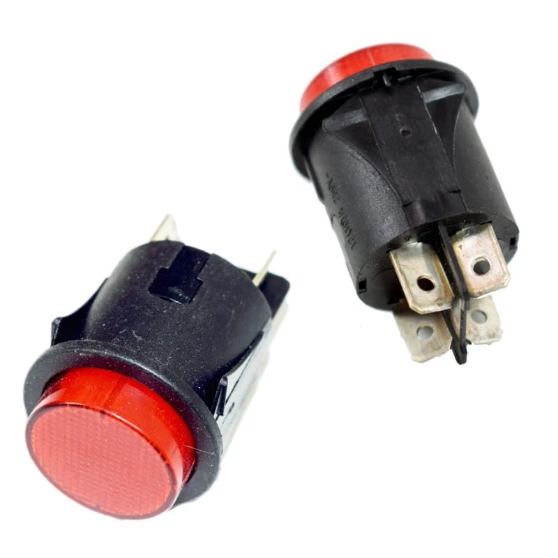 Fabrycznie nowy włącznik 1 pozycyjny do pojazdów na akumulator (auta, quady, motorki) , 4 wejścia - piny od spodu.