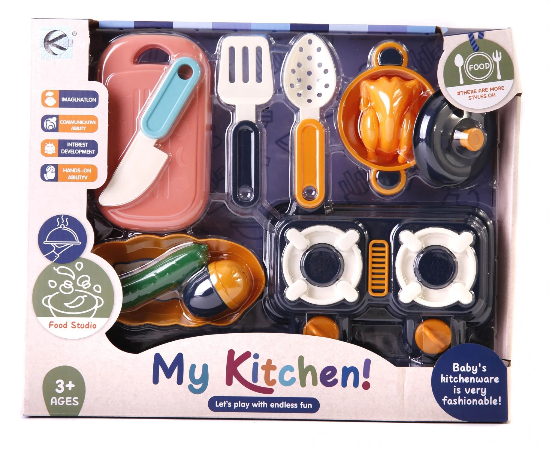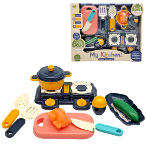 W skład zestawu wchodzą plastikowe przybory kuchenne oraz produkty, będące imitacjami wyposażenia prawdziwej kuchni. Produkt wykonany jest z wysokiej jakości plastiku, zapewnia długie użytkowanie. Zabawka idealnie nada się na prezent dla małego kucharza i zapewni wiele godzin wspaniałej zabawy.