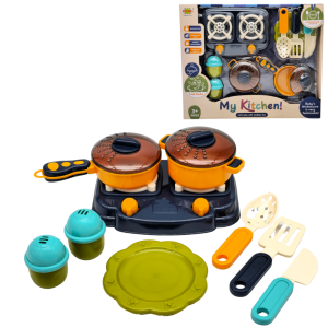 W skład zestawu wchodzą plastikowe przybory kuchenne oraz produkty, będące imitacjami wyposażenia prawdziwej kuchni. Produkt wykonany jest z wysokiej jakości plastiku, zapewnia długie użytkowanie. Zabawka idealnie nada się na prezent dla małego kucharza i zapewni wiele godzin wspaniałej zabawy.