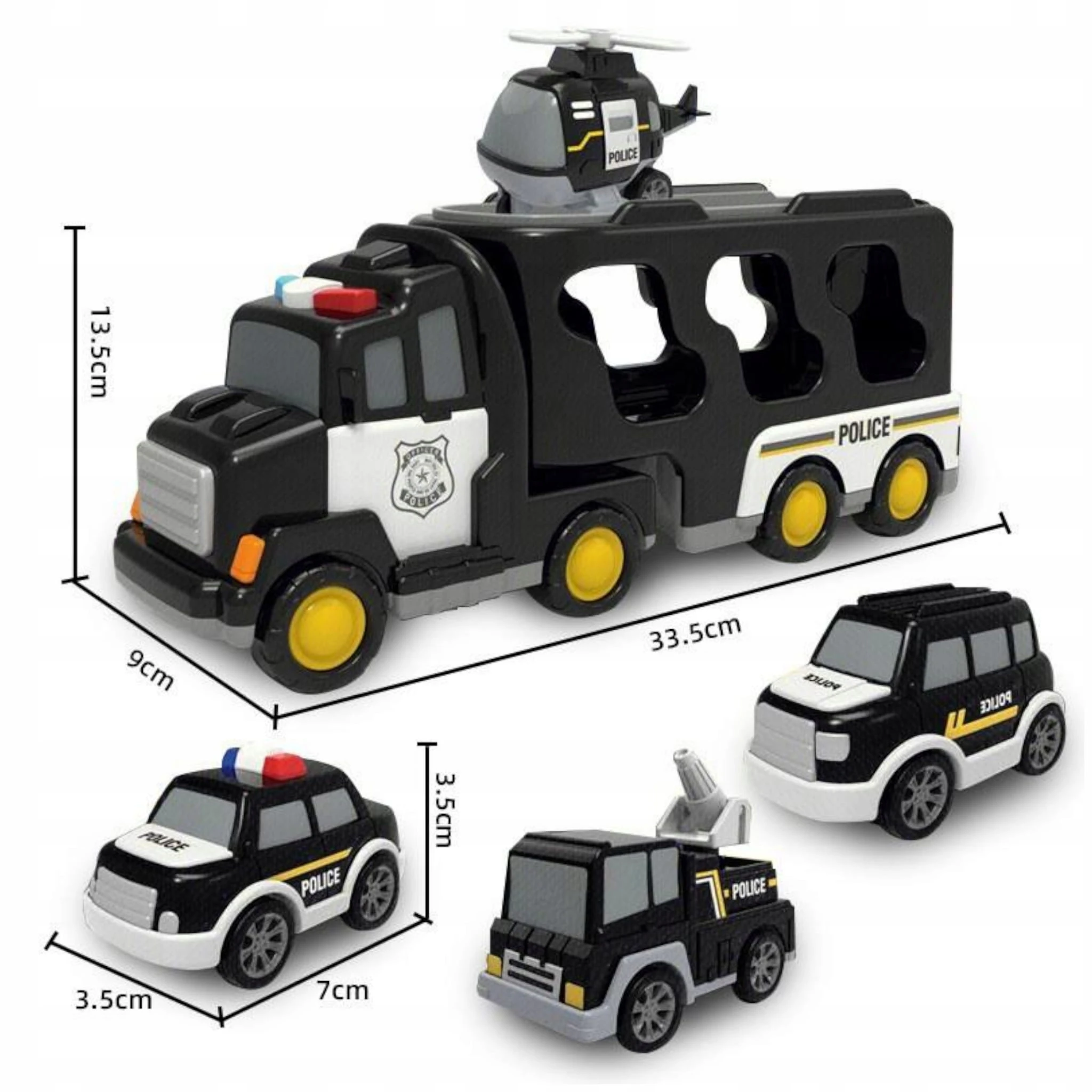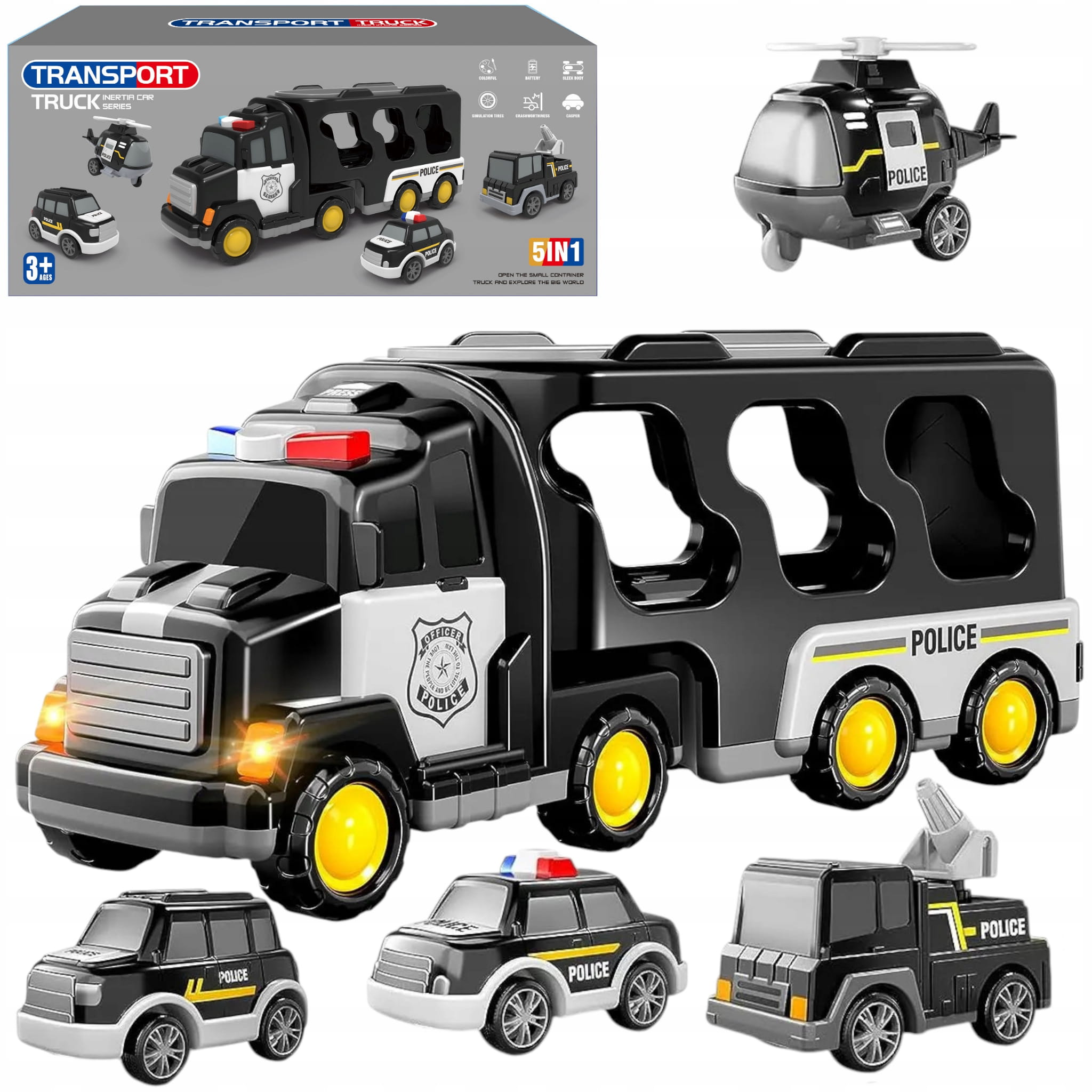 Zestaw laweta transportowa autka policyjne helikopter dźwięk SX600-23A
